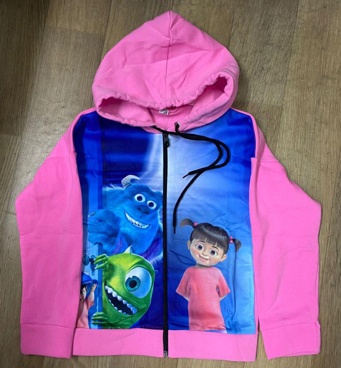 Описание: Толстовка детская на молнии для девочки с капюшоном. Выполнена с большим, красочным принтом на переднем плане. Манжеты рукавов и и низ толстовки на широкой трикотажной резинке. Застежка на молнии.