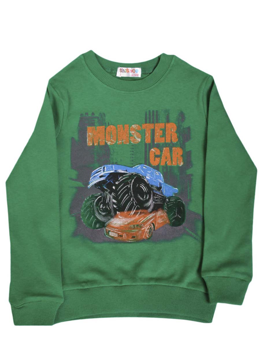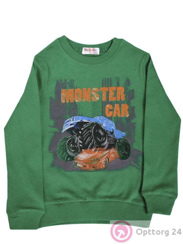 Детская толстовка-лнгслив, модель зеленого цвета с принтом.