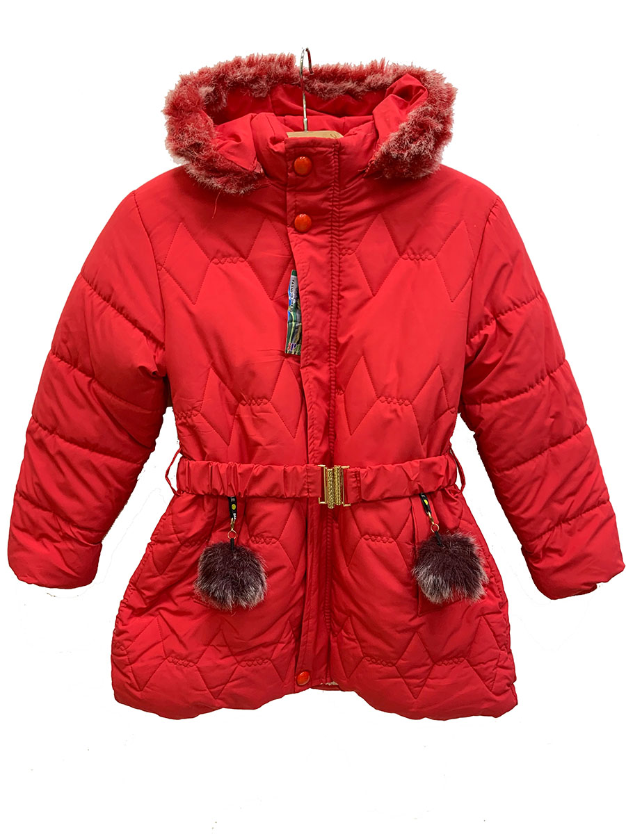Описание: Утепленная стильная куртка для девочки, однотонная, красного цвета. Стеганная. У куртки есть пояс с меховыми пумпонами. Отличное качество. Будет сочетаться с любым видом одежды. Температурный режим до -15. На капюшоне искусственный мех. Застежка на молнии с ветрозащитной планкой на кнопках. Есть два кармана.
