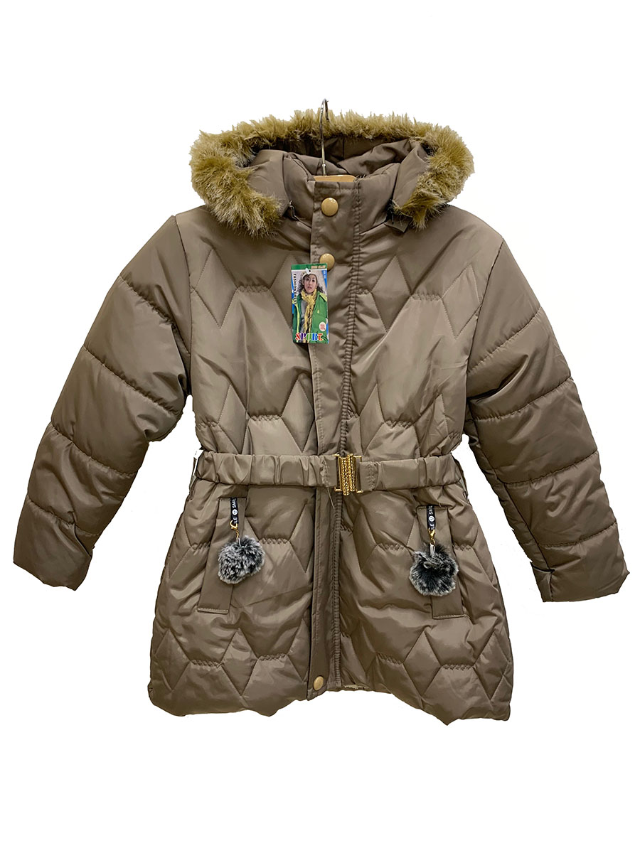 Описание: Утепленная модная куртка для девочки, однотонная, бежевого-золотого цвета. Стеганная. У куртки есть пояс с меховыми пумпонами и золотой пряжкой. Манжеты с эластичными вставками-резинками, что отлично защищает руки от холода. Отличное качество. Будет сочетаться с любым видом одежды. Температурный режим до -15. На капюшоне искусственный мех. Застежка на молнии с ветрозащитной планкой на кнопках. Есть два кармана.