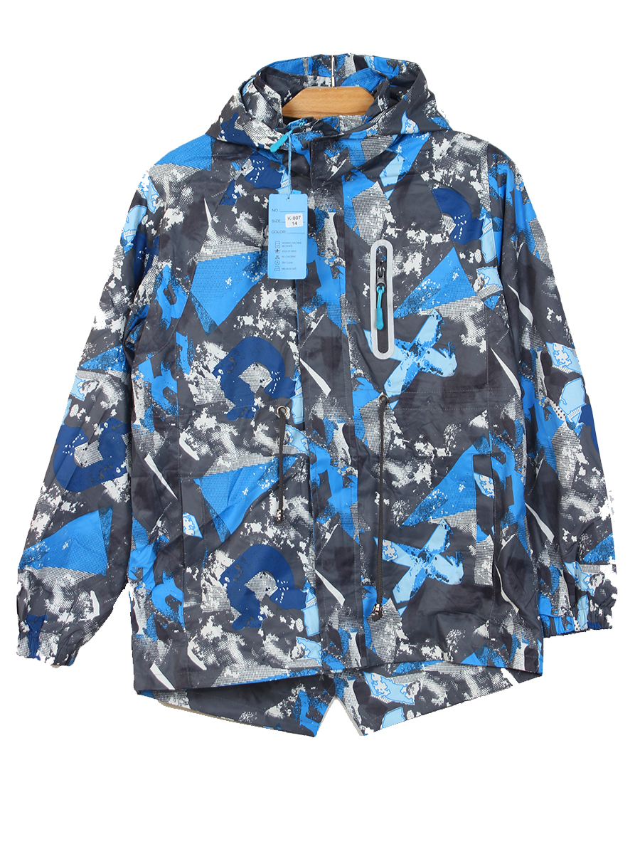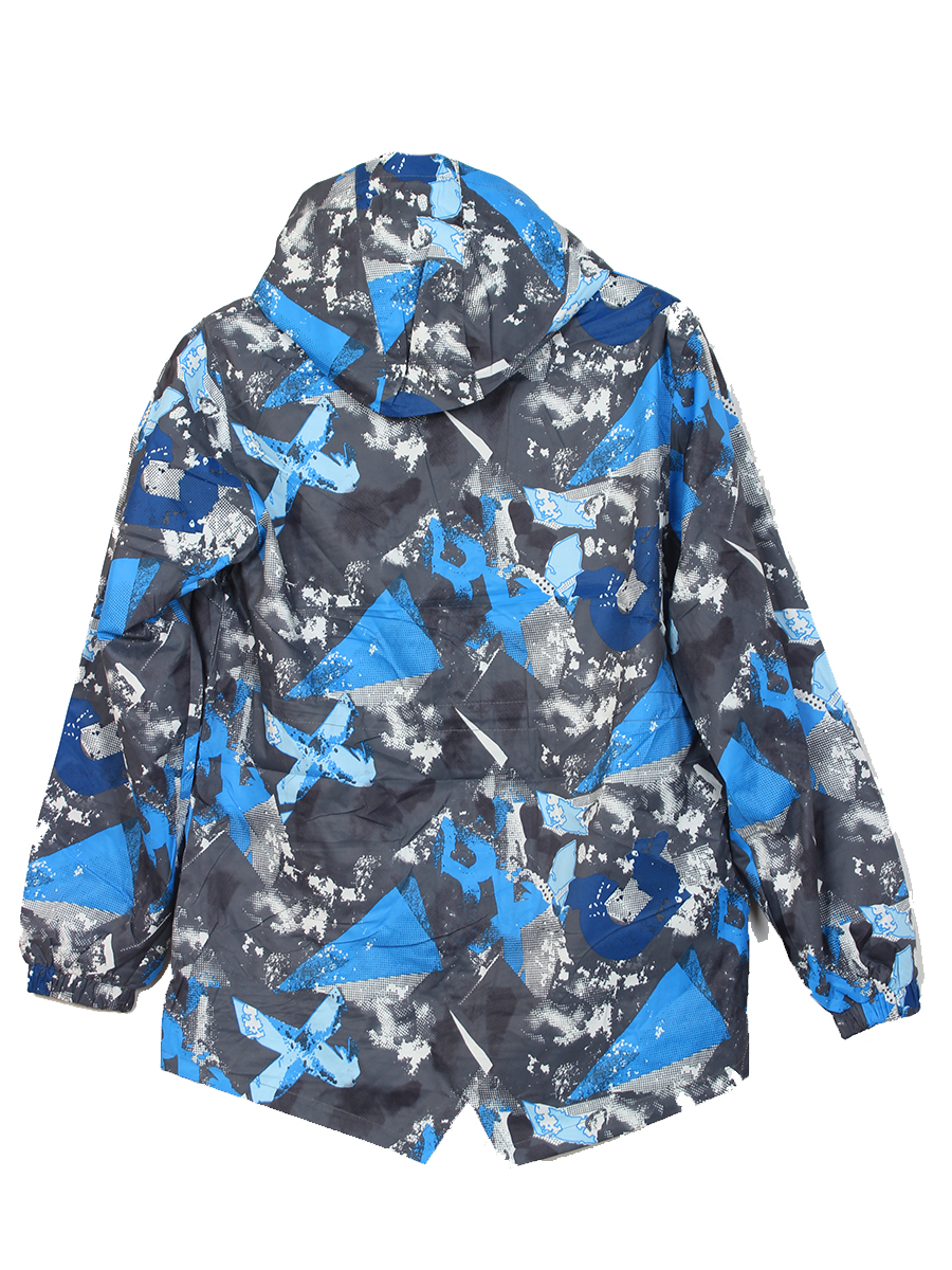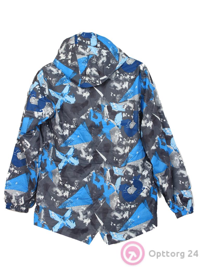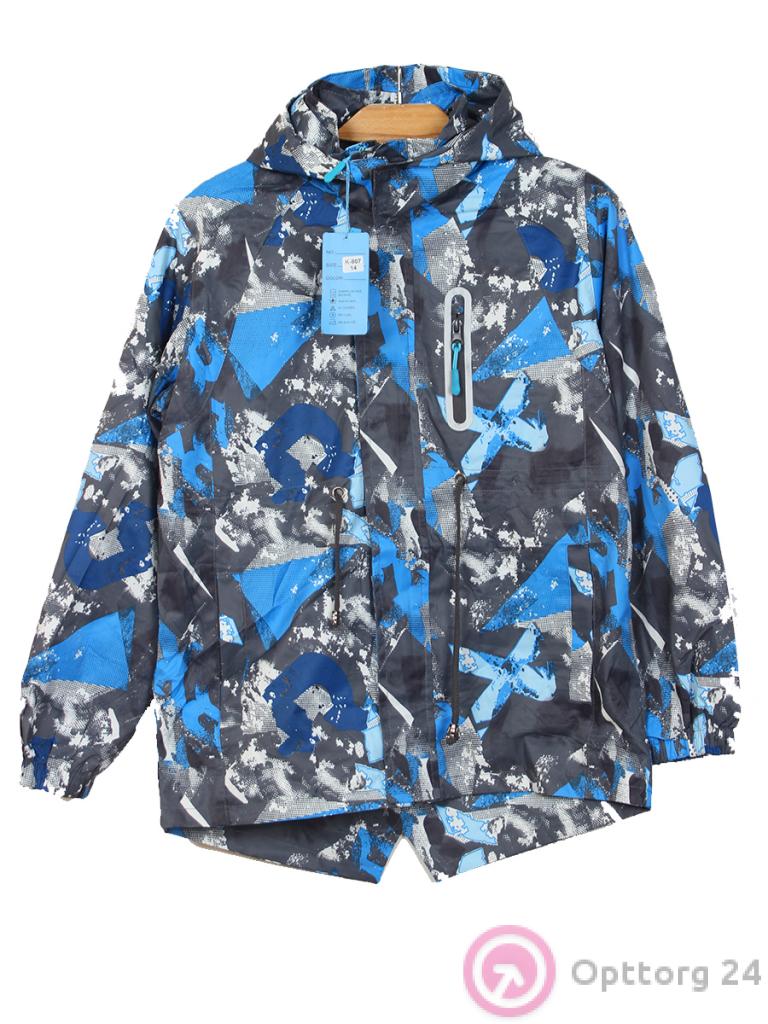Ветровка подростковая на подкладе с капюшоном черная с синими вставками оптом