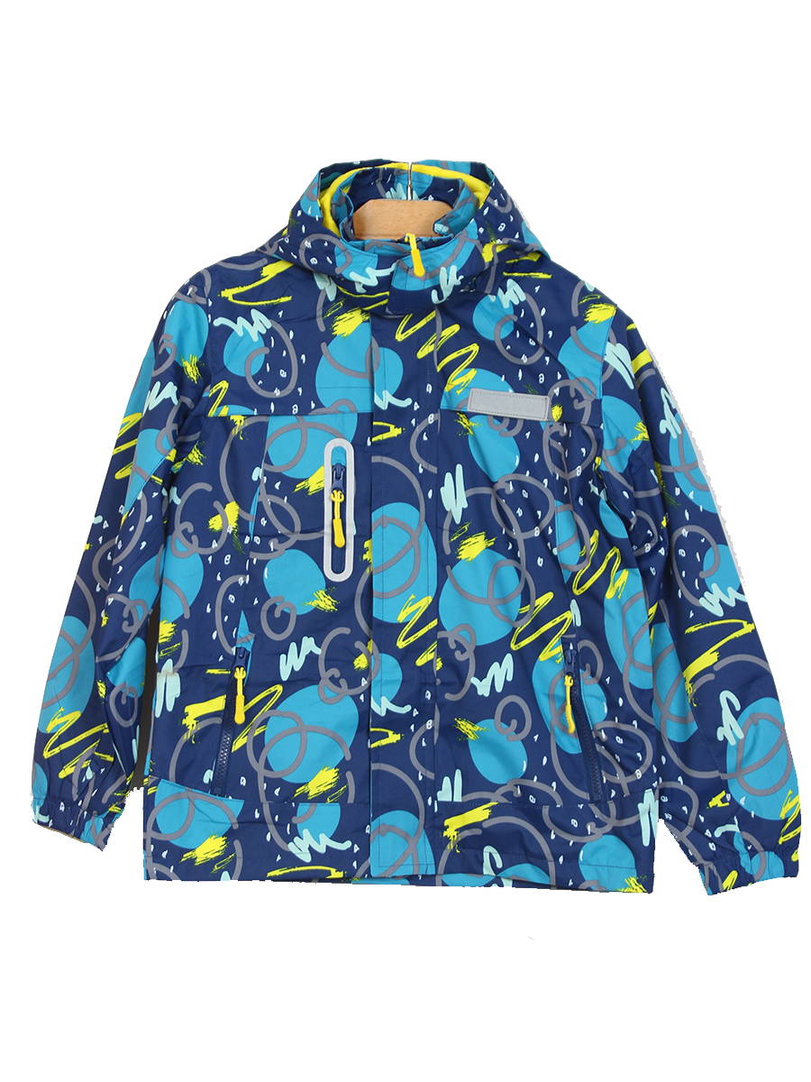 Ветровка подростковая на подкладе с капюшоном синяя с желтым рисунком