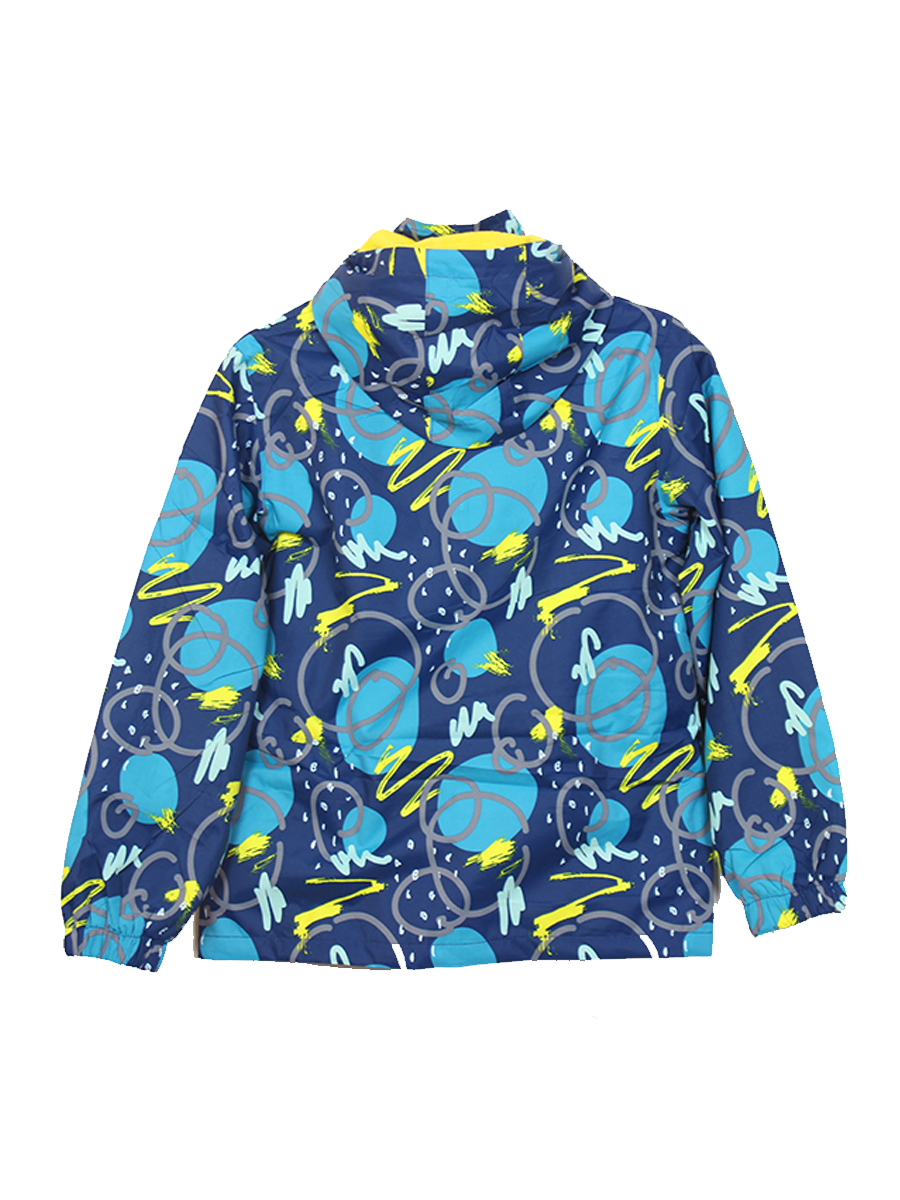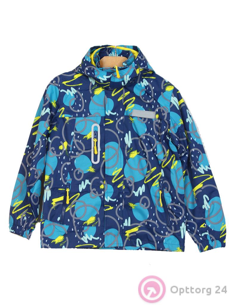 Ветровка подростковая на подкладе с капюшоном синяя с желтым рисунком оптом