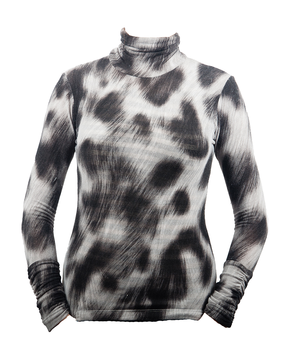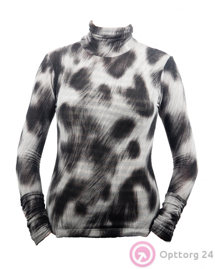 Детский джемпер выполнен из эластичной теплой ткани. Модный леопардовый принт и высокий воротник-стойка делает его еще более притягательным. Для маленьких модниц в комплекте идет цепочка, декорированная черной лентой.