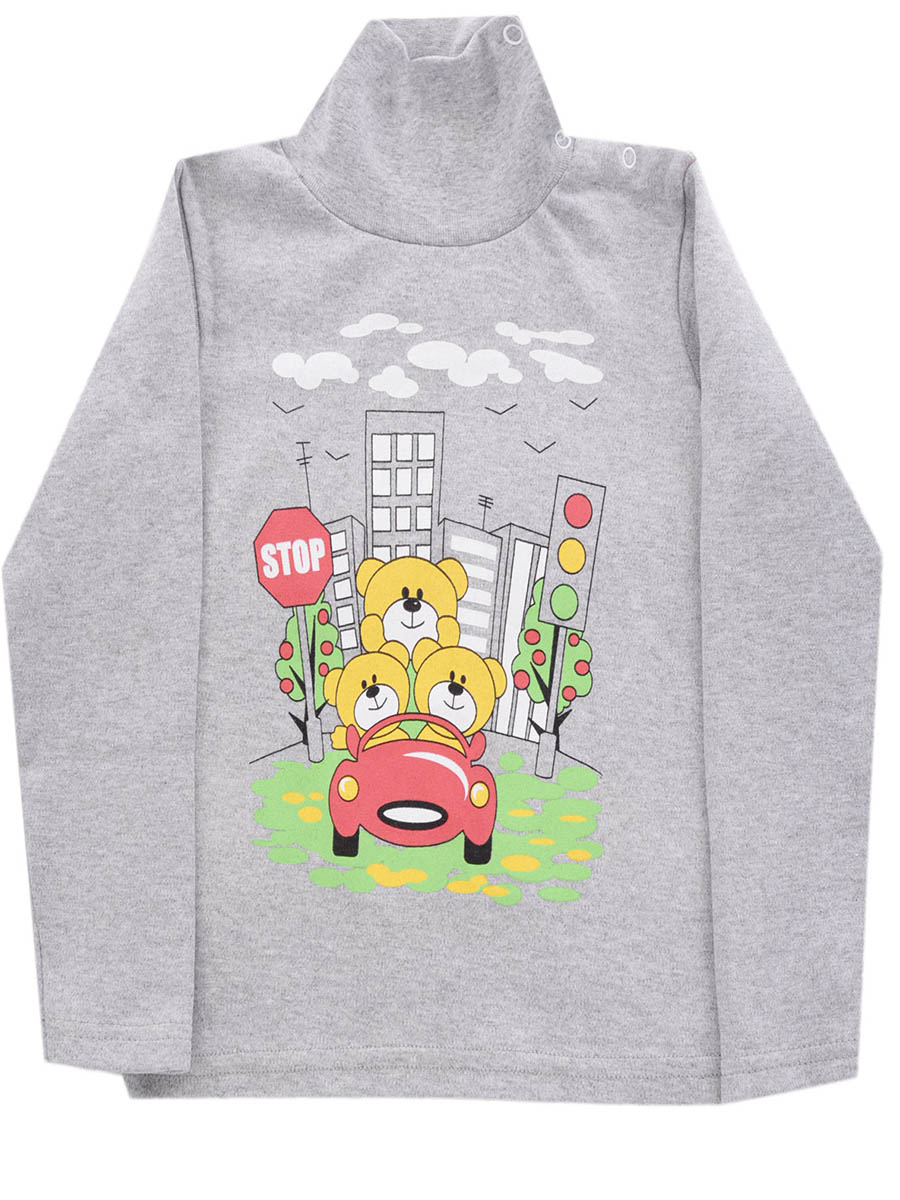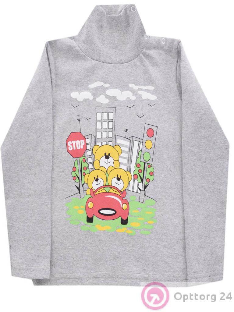 Детская водолазка серого цвета для мальчика, модель с длинным воротом на кнопке.