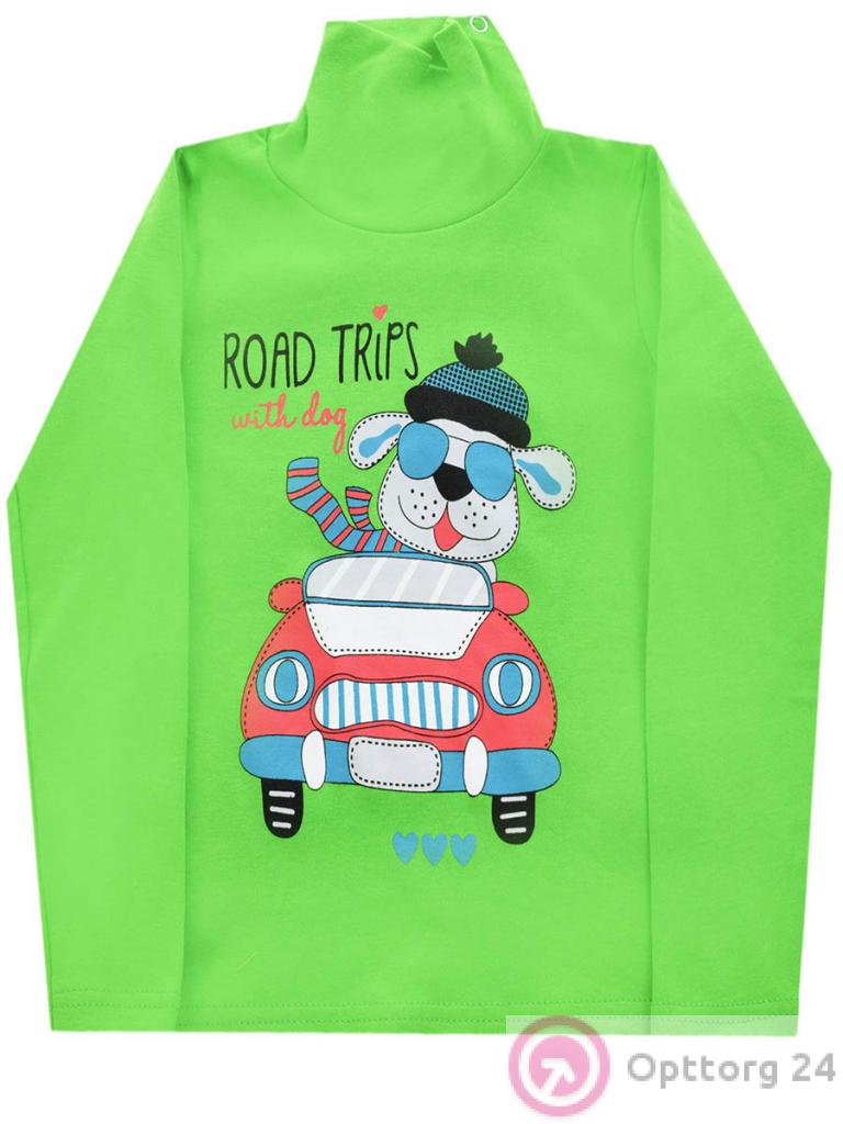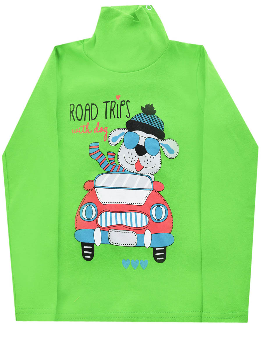 Детская водолазкап для мальчика ярко-салатового цвета с принтом.