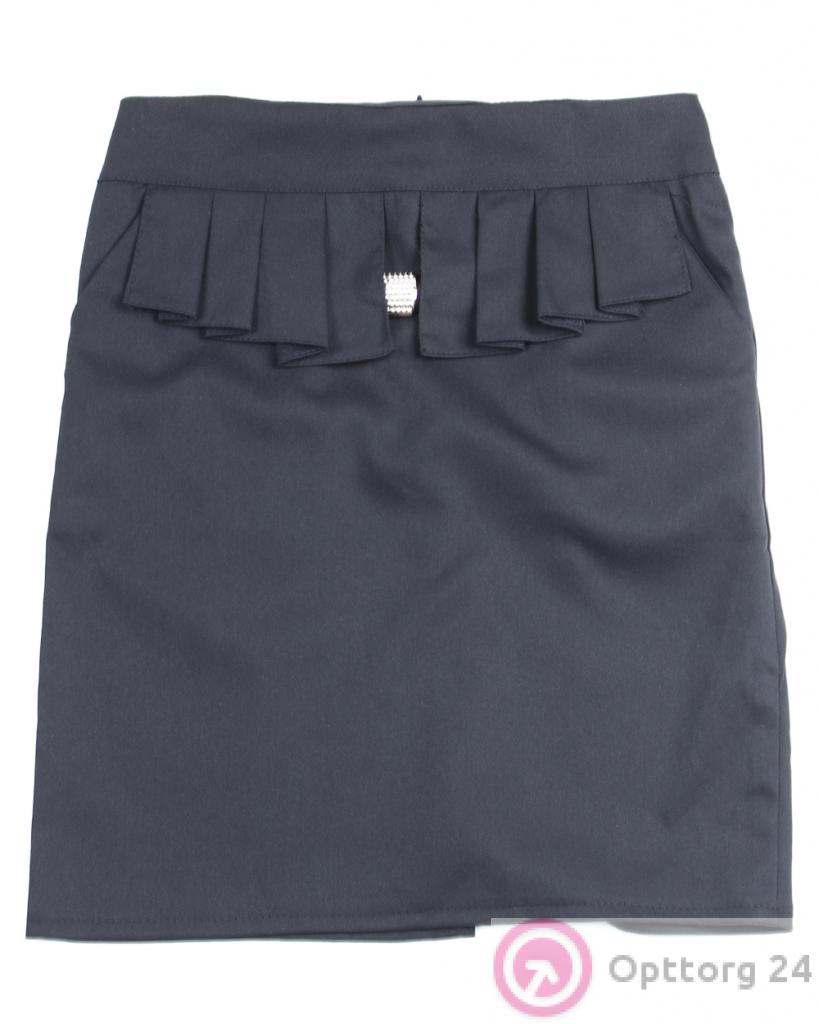 Юбка детская тёмно-синего цвета с брошью и украшением на верхней части изделия.