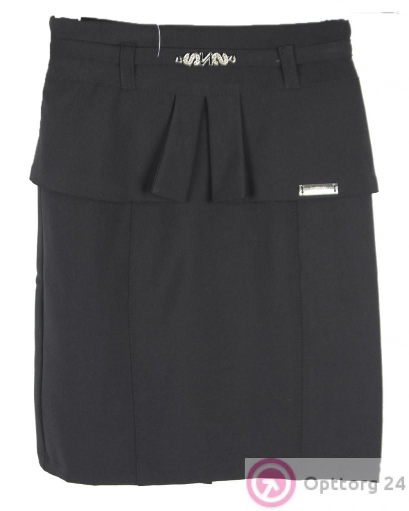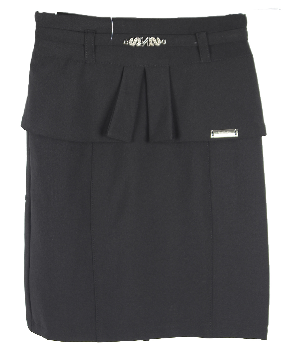 Детская юбка черного цвета с поясом. Модель прямого кроя со вставкой.