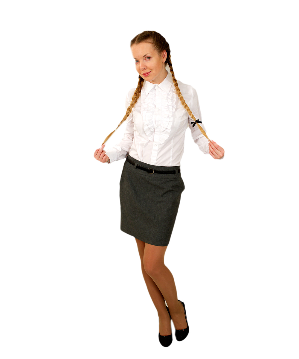 Школьная юбка серого цвета с тонким поясом. Изделие имеет длину чуть выше колена.