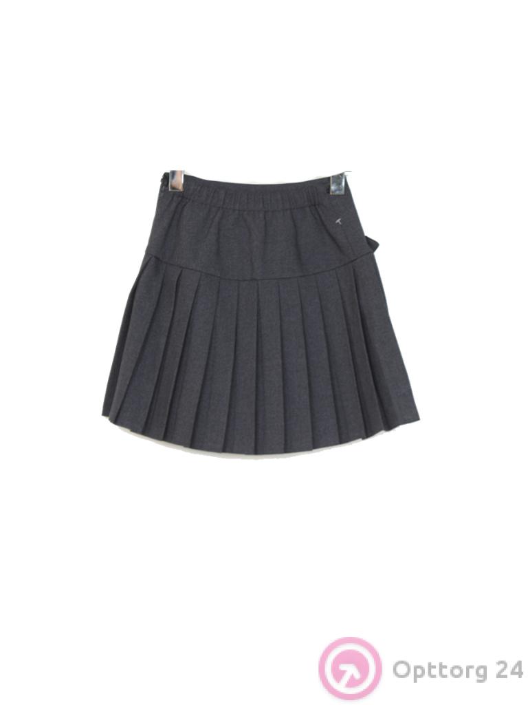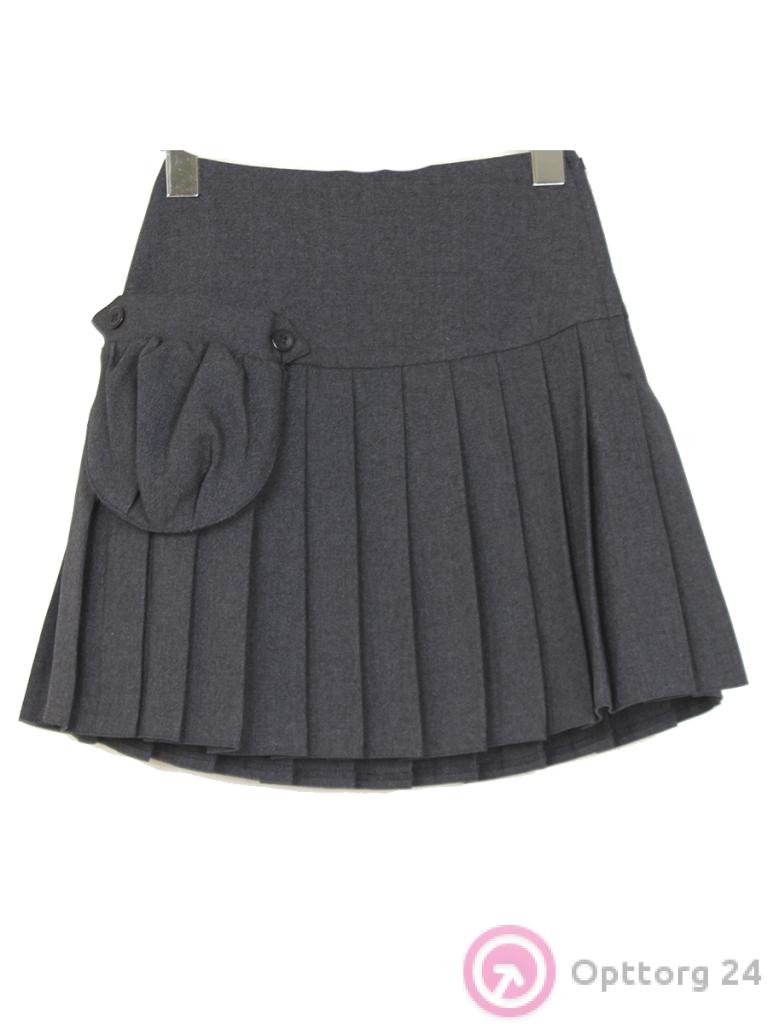Юбка школьная классическая серого цвета для девочки с накладным карманом оптом