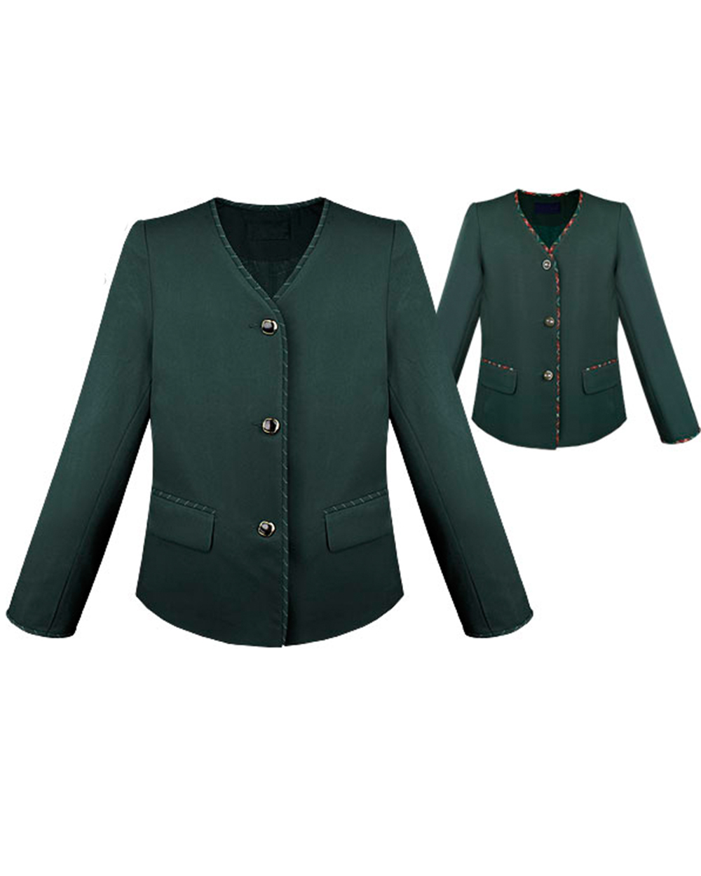 Детскйи пиджак зеленого цвета. Модель имеет контрастную полосаттую окантовку.