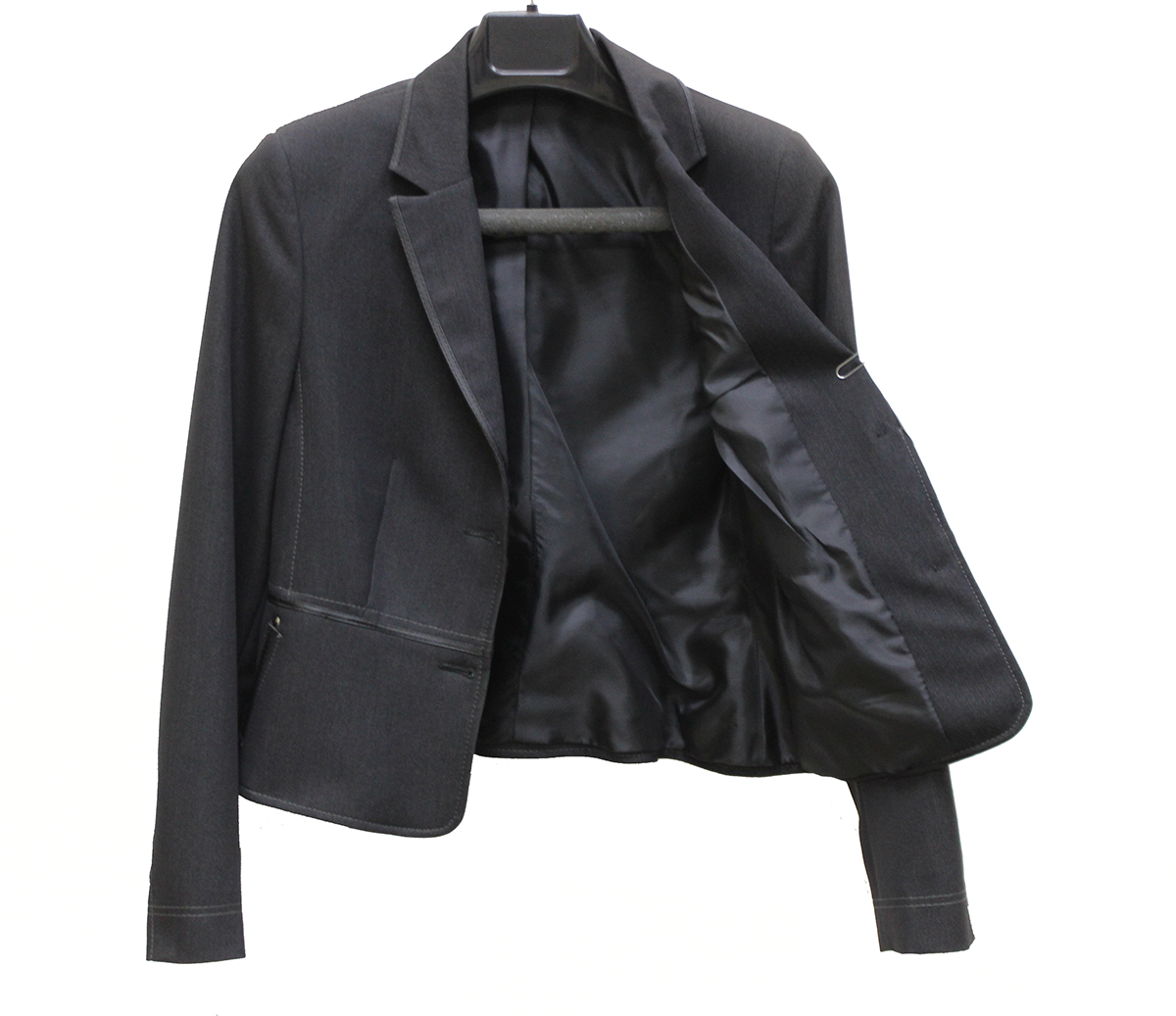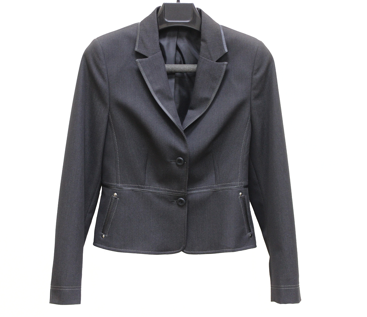 У пиджака застежка на двух пуговицах, есть два кармана.