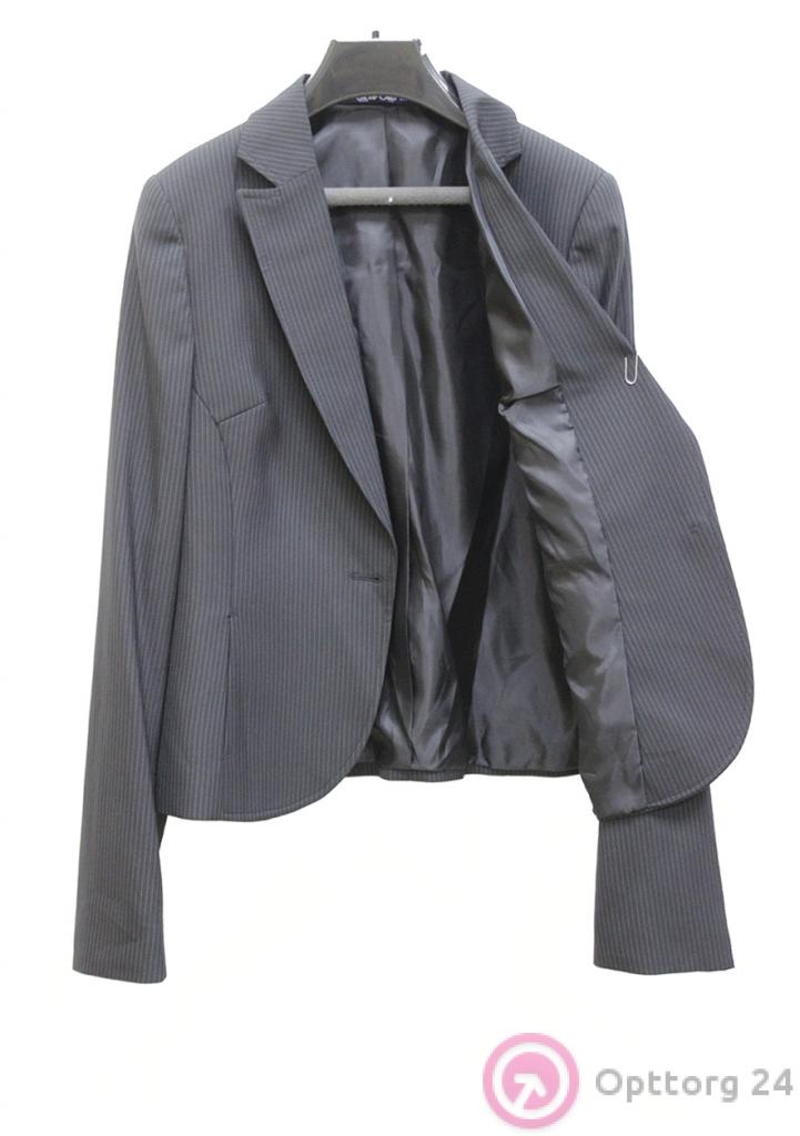 Жакет для девочки серого цвета в полосочку на одной пуговице оптом