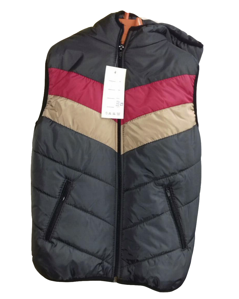 Жилет черного цвета с красной и бежевой полоской оптом