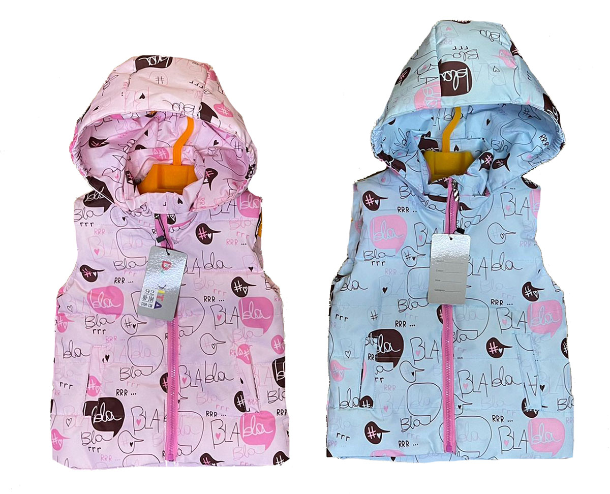 Описание: Жилет детский демисезонный на синтепоне для девочки выполнен в постельных тонах. Застежка на молнии, есть два кармана и капюшон.