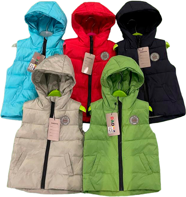 Описание: Жилет детский на синтепоне с принтом, DADITA, разноцветные, фабричного производства. Застегивается на молнию. Есть капюшон и два кармана.