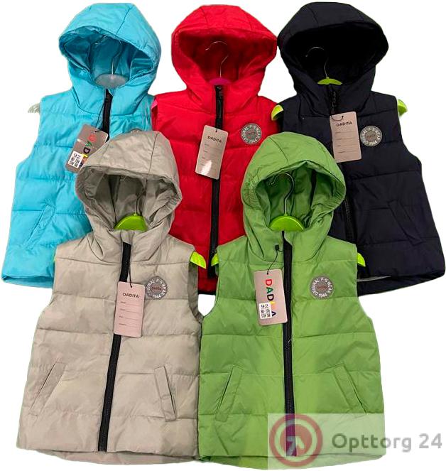 Жилет детский на синтепоне с принтом DADITA, разноцветные оптом
