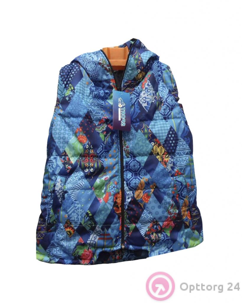 Жилет детский синего цвета с абстрактным принтом оптом