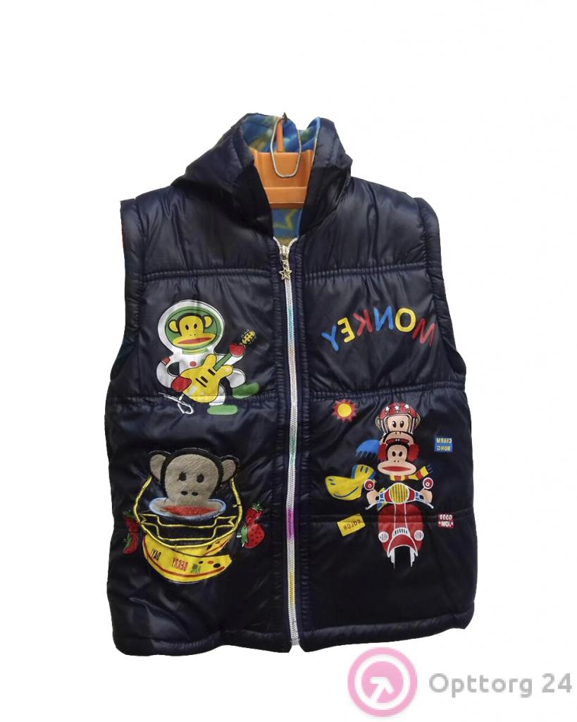Жилет детский темно-синего цвета с обезьянами оптом
