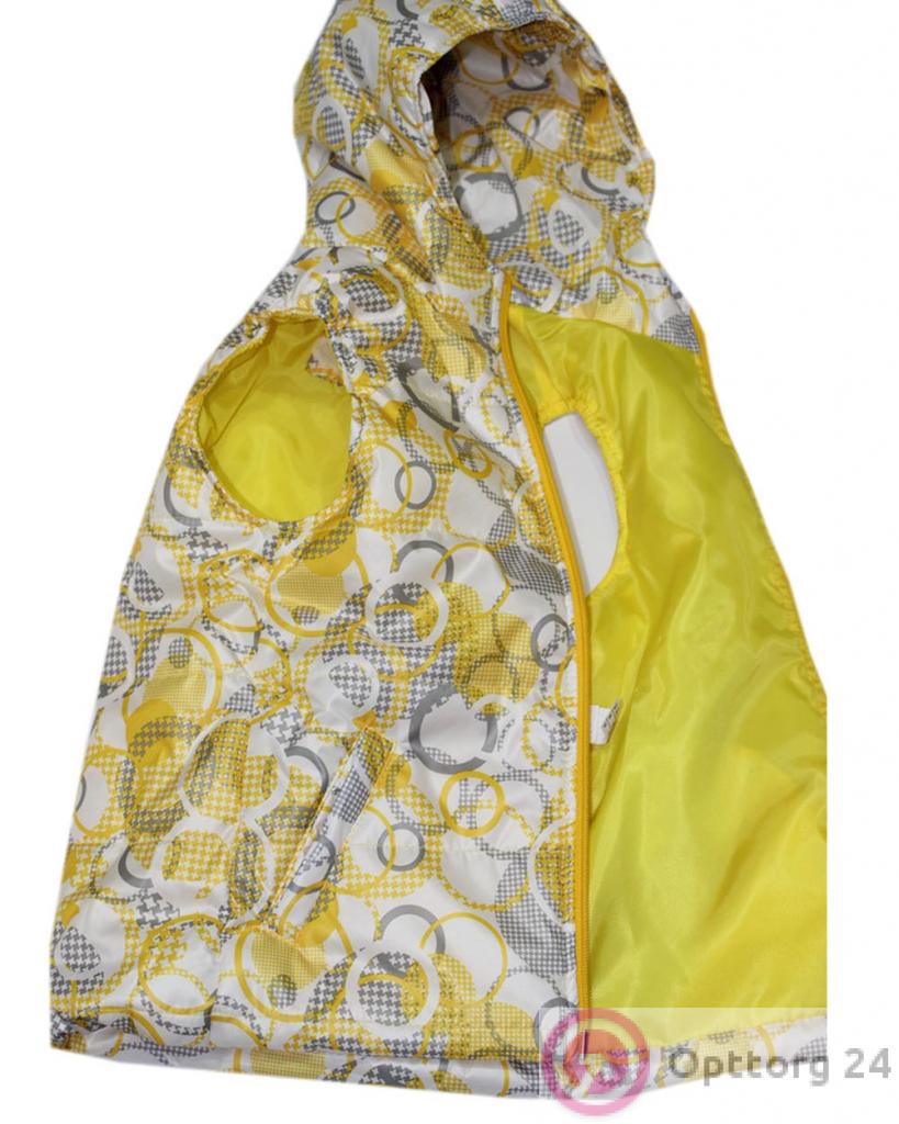Детский жилет на молнии. Модель имеет капюшон, котрый не отстегивается. В жилете предусмотрены два врезных кармана по боках.