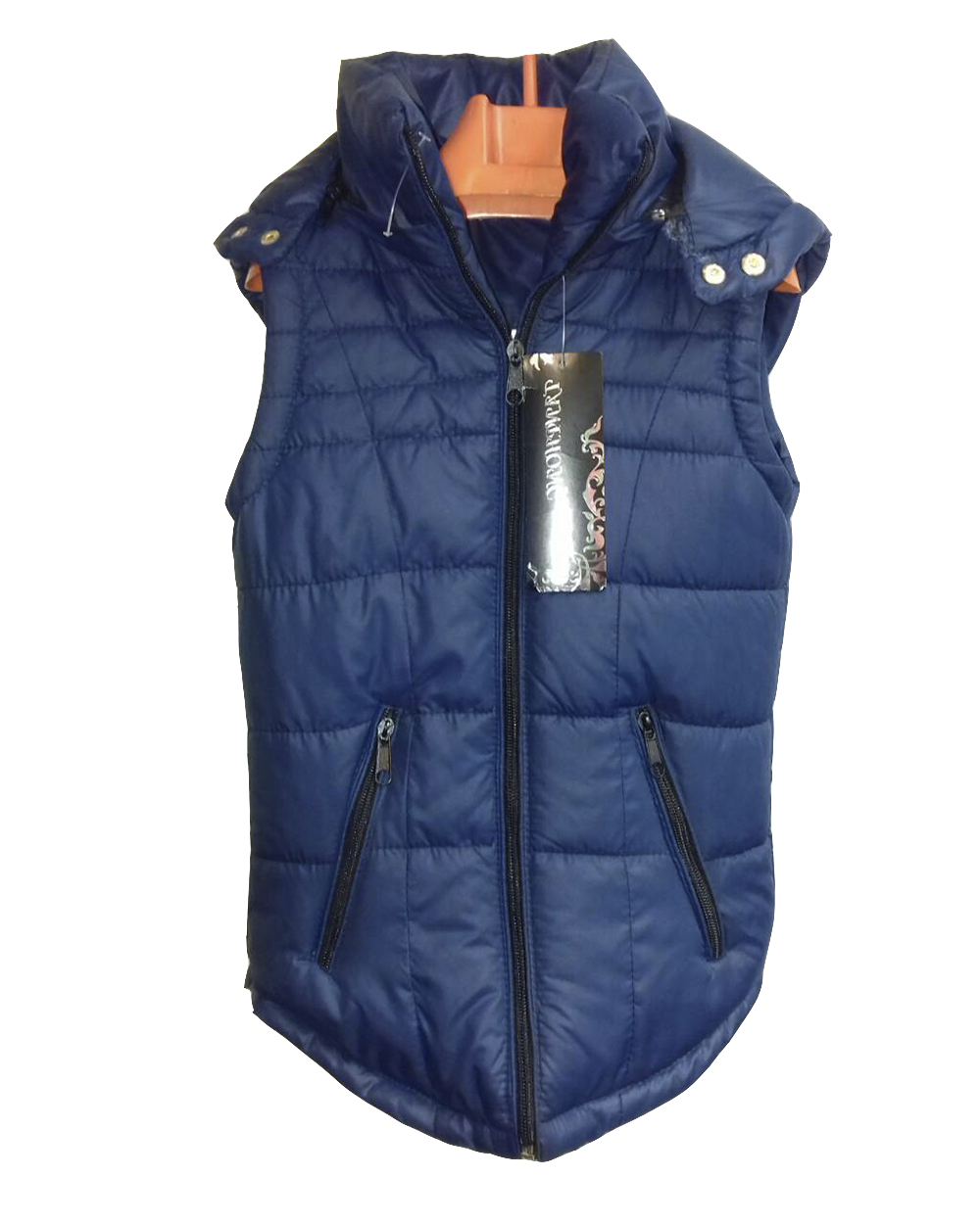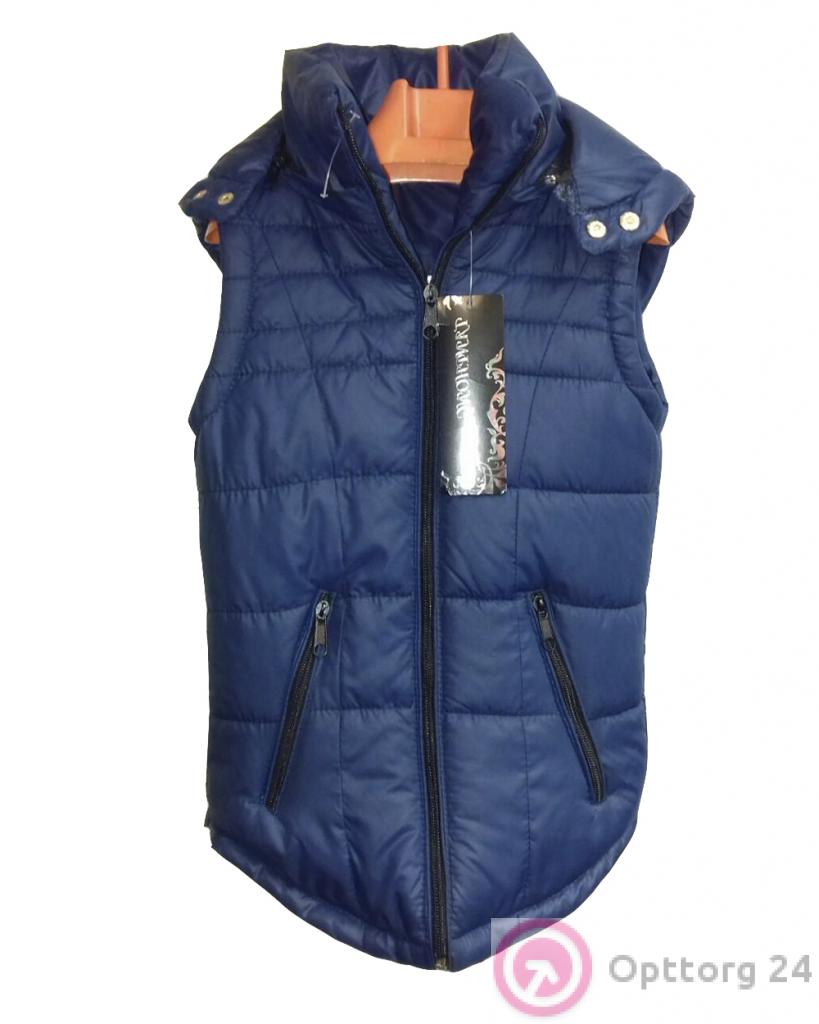 Удобный спортивный жилет со съёмным капюшоном. В изделии есть воротник-стойка.