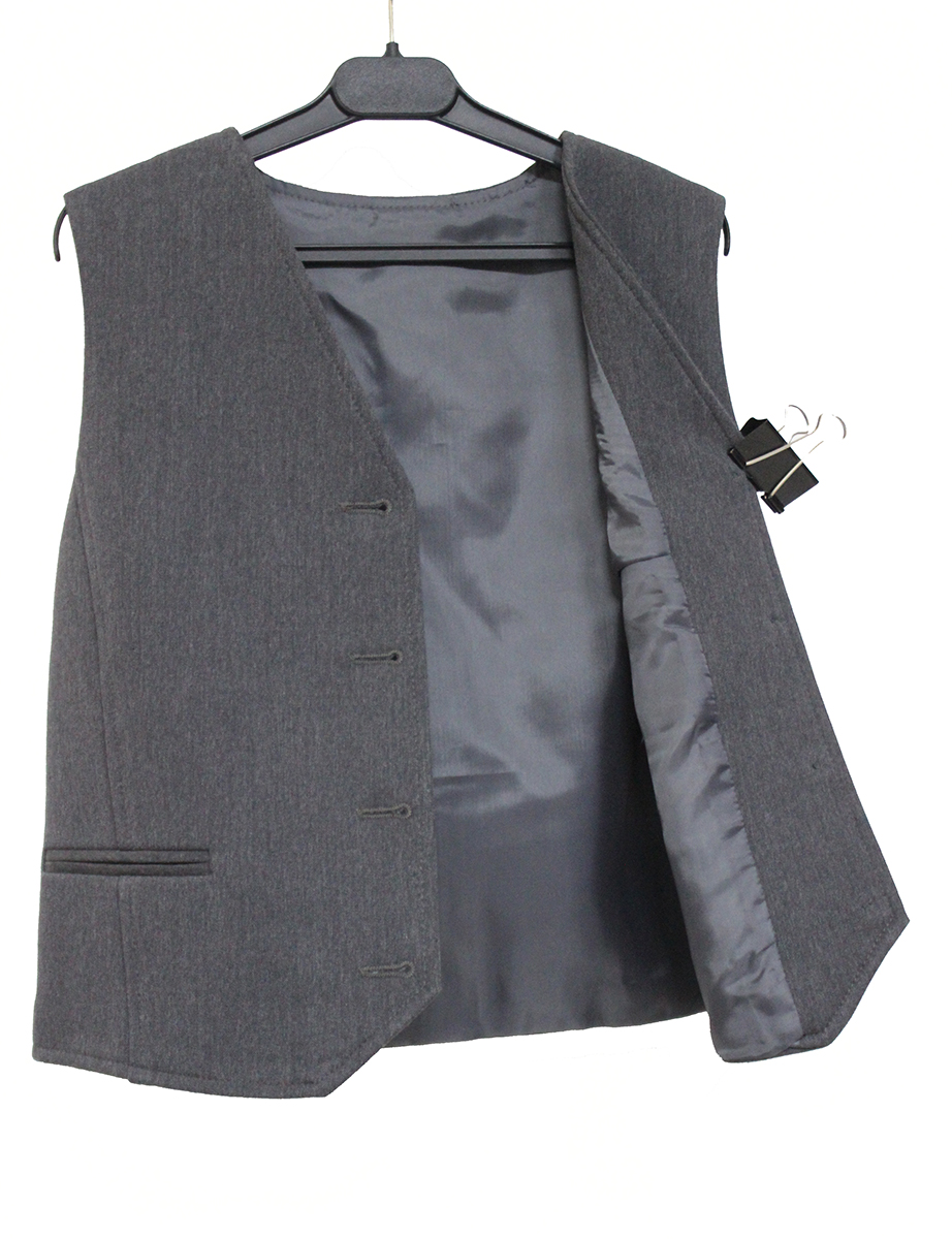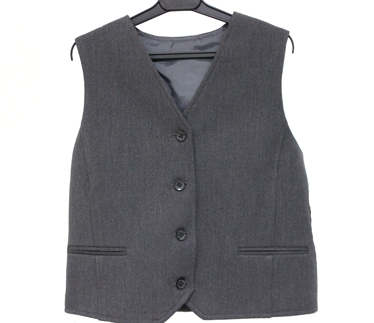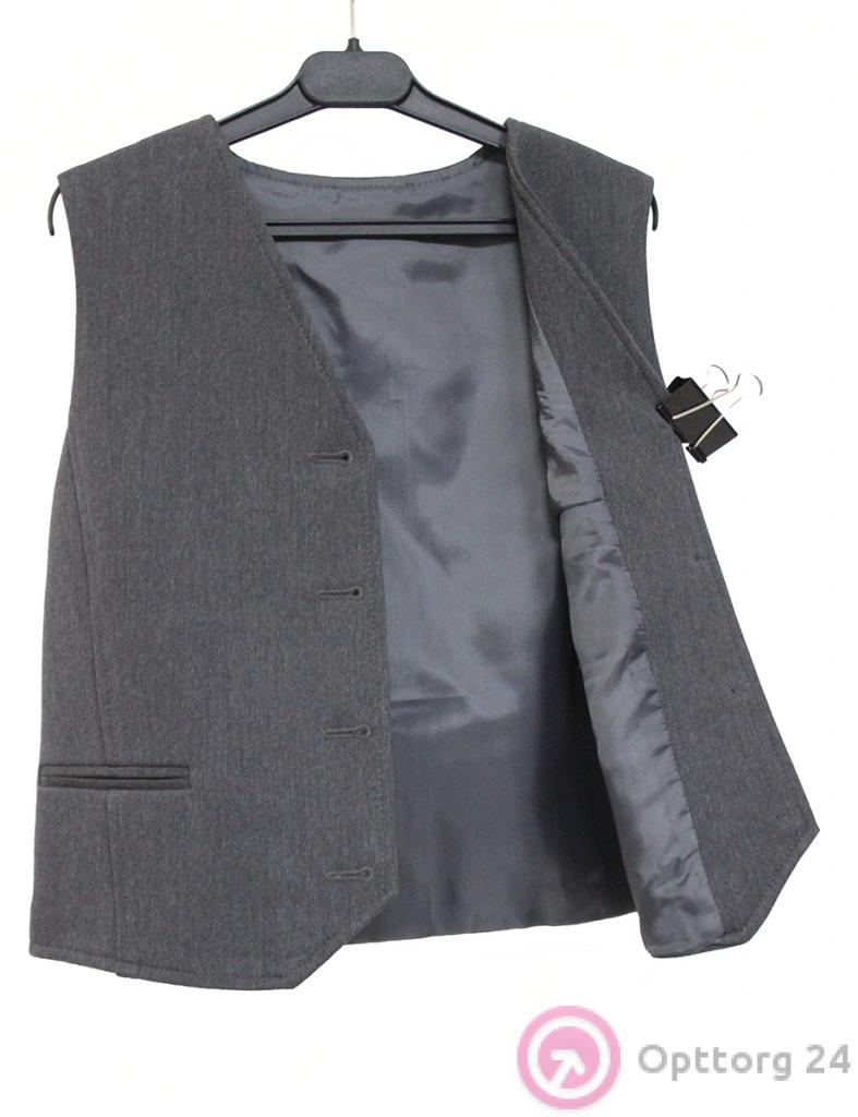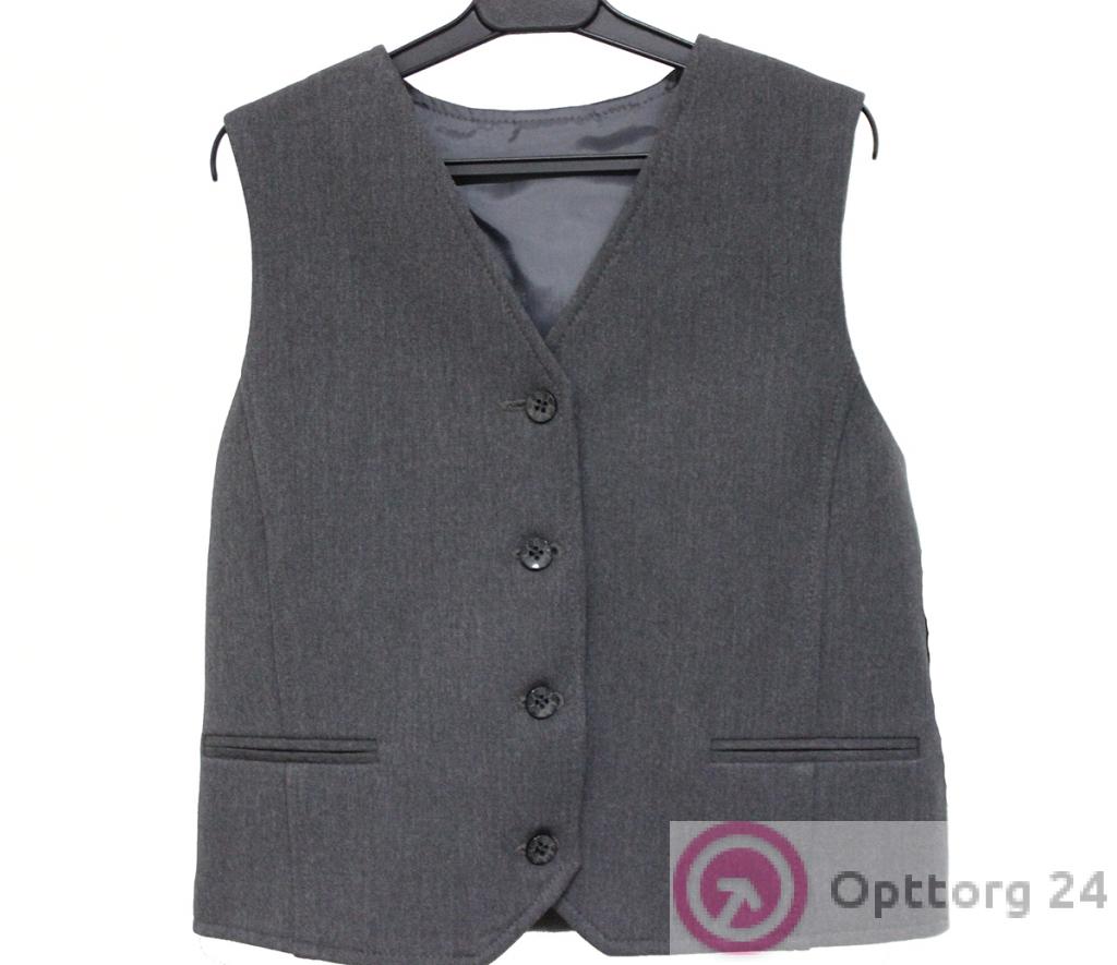 Описание: Жилет для девочки серого цвета, классического стиля, однотонный.