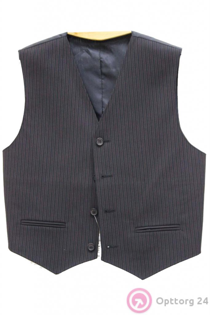 Жилет для мальчика школьный п/шерсть черный в вертикальную полоску оптом