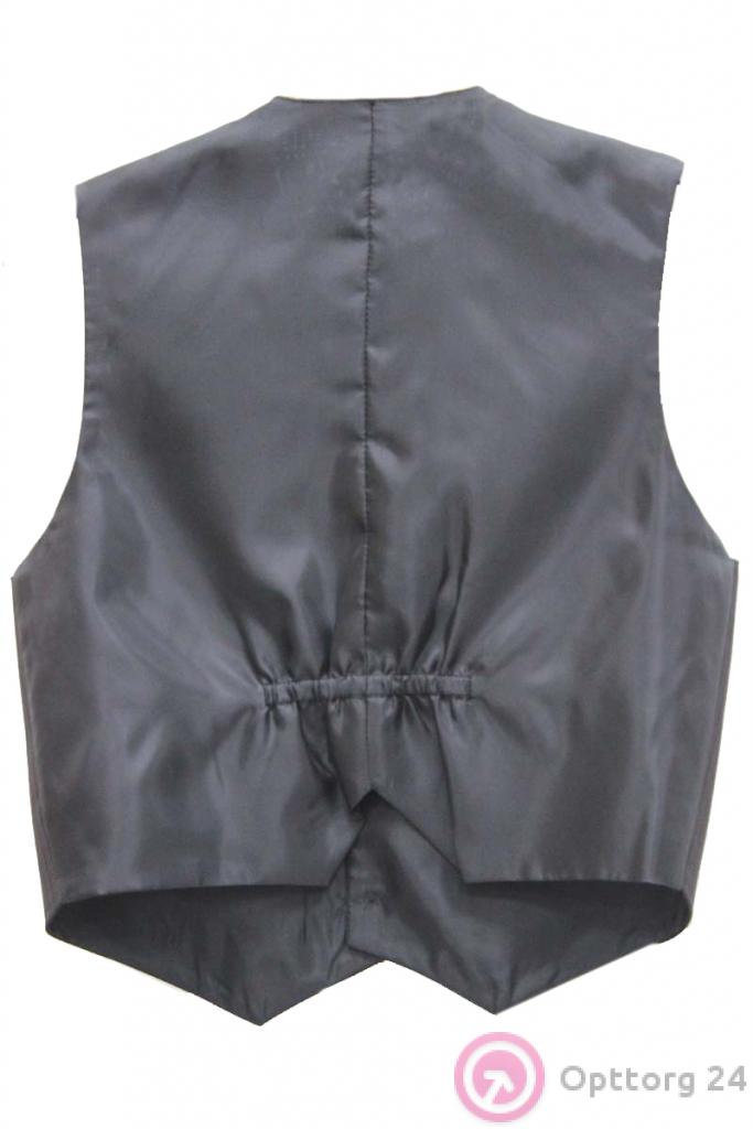 Описание модели: жилет для мальчика школьный,черный в вертикальную полоску. 4 пуговицы, сзади регулировка ширины, накладные карманы и подклад.