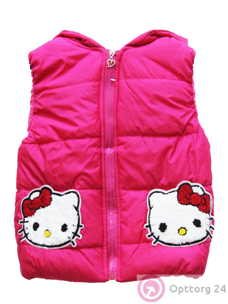 Описание: жилет на синтепоне для девочки розовый с серыми ушками. Есть карманы с изображением Hello Kitty