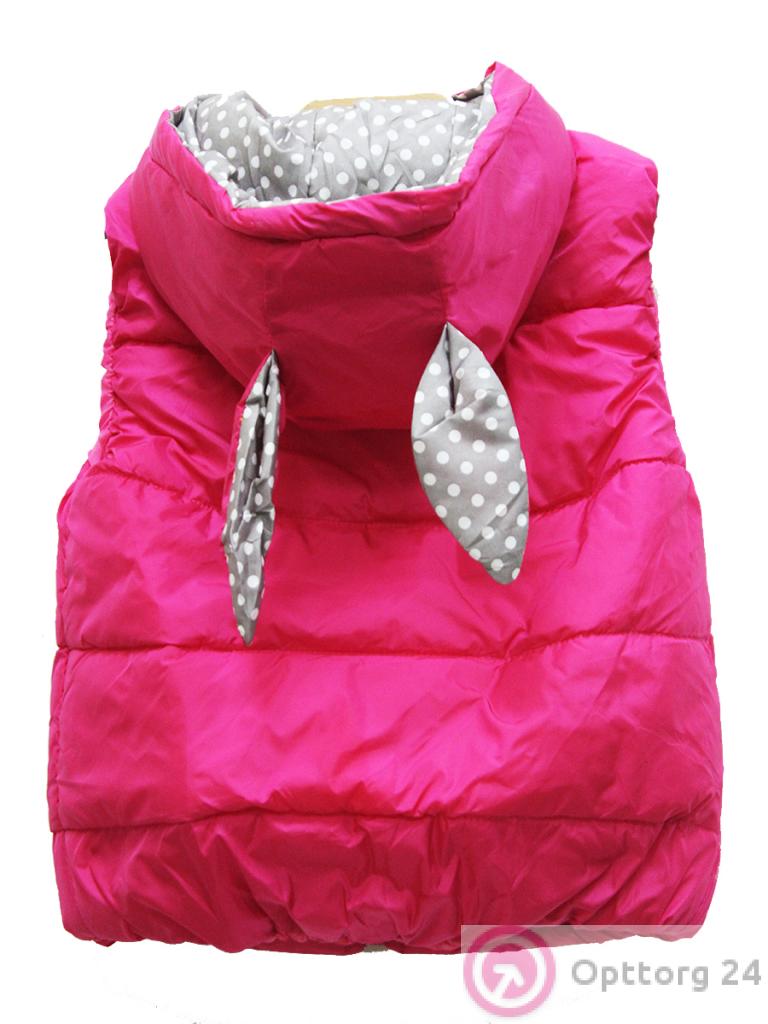 Жилет на синтепоне для девочки розовый с серыми ушками оптом