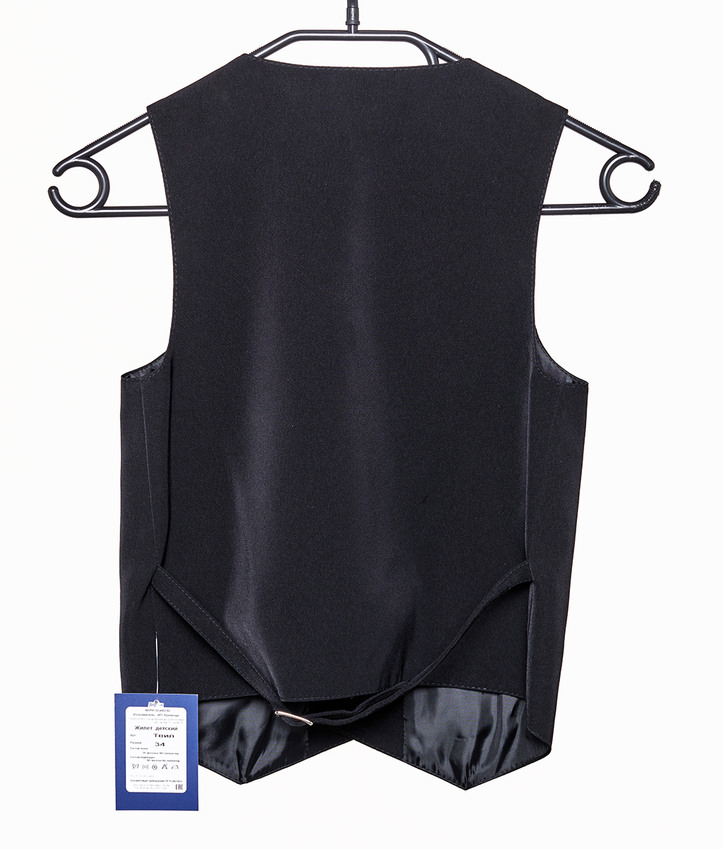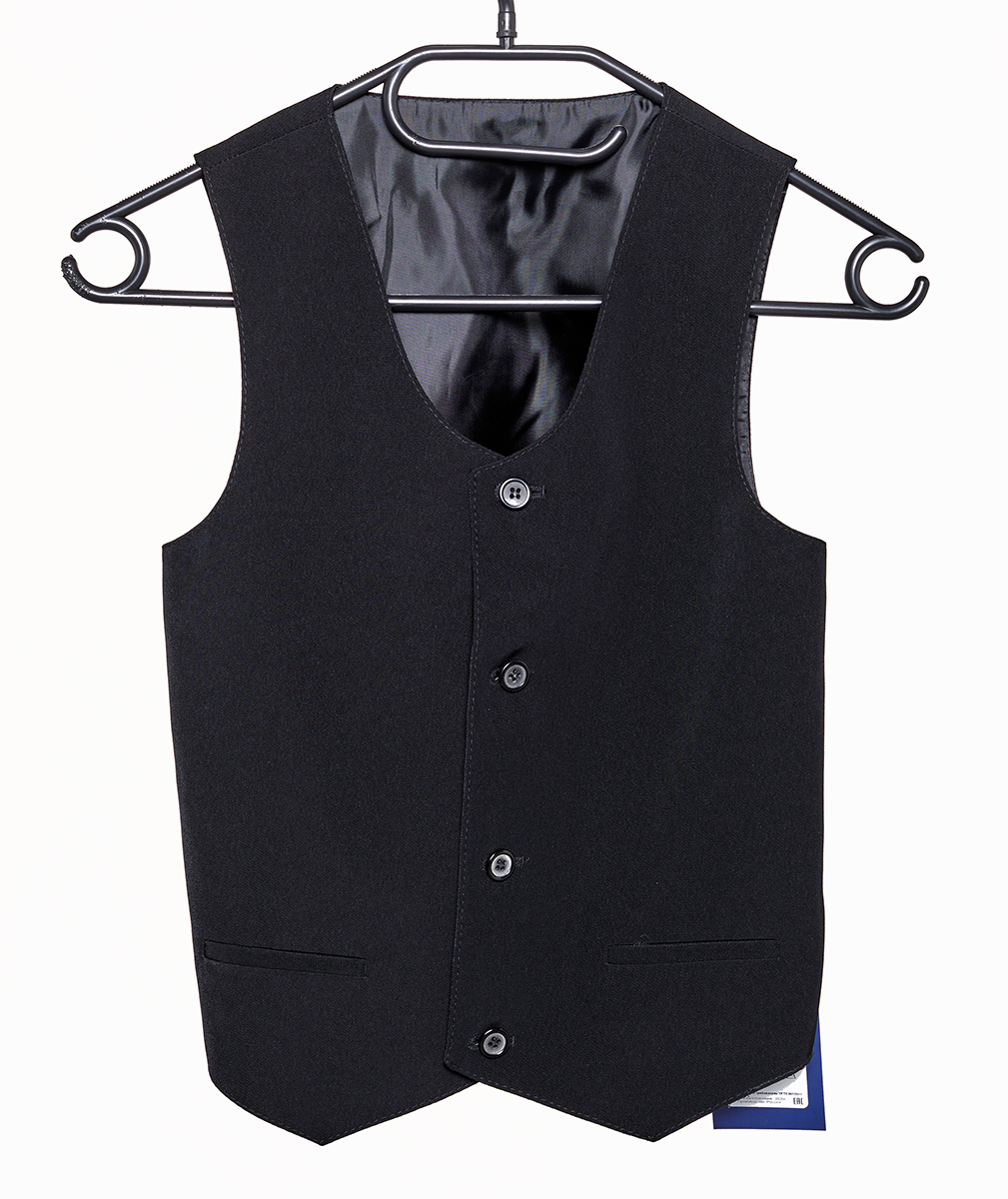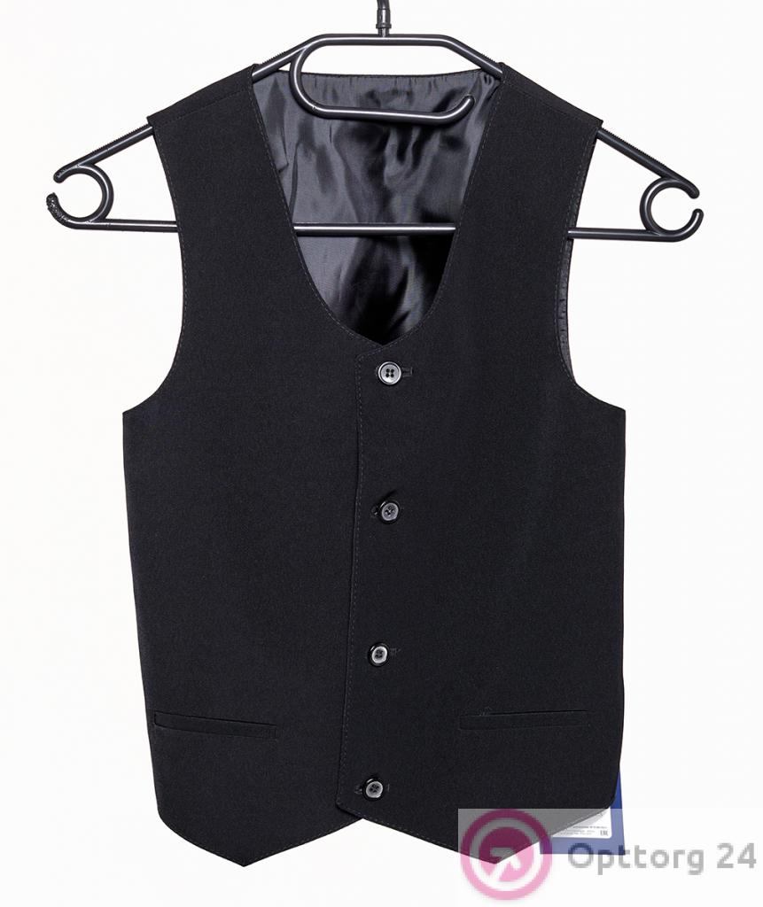 Описание: Жилет школьный для мальчика черного цвета с отливом, отличного качества. V-горловина. Застегивается на 4 пуговицах. Сзади жилет выполнен из идентичной ткани, а так же есть регулируемый регулятор размера по ширине изделия.