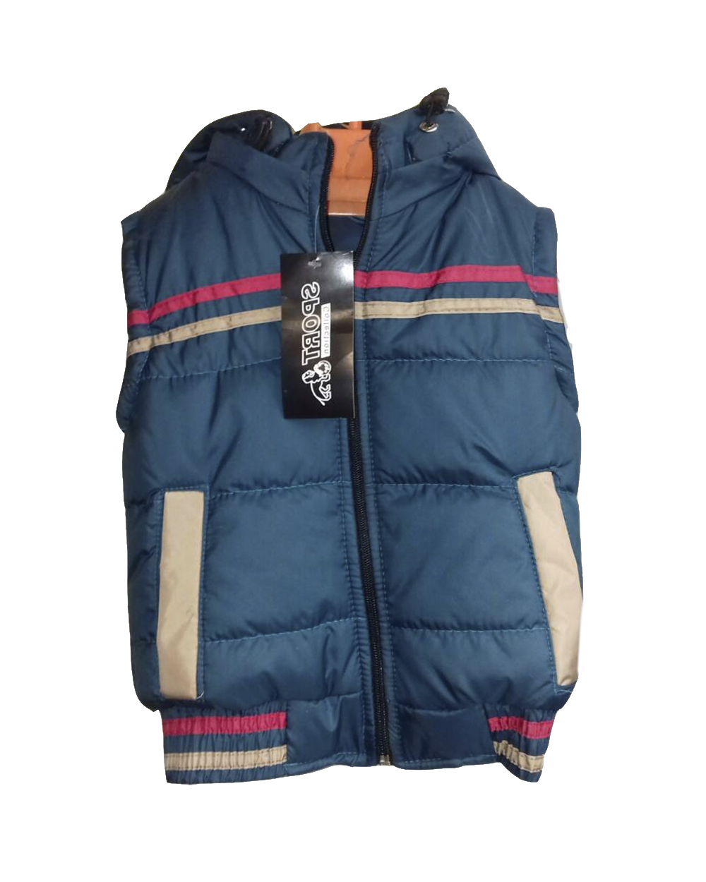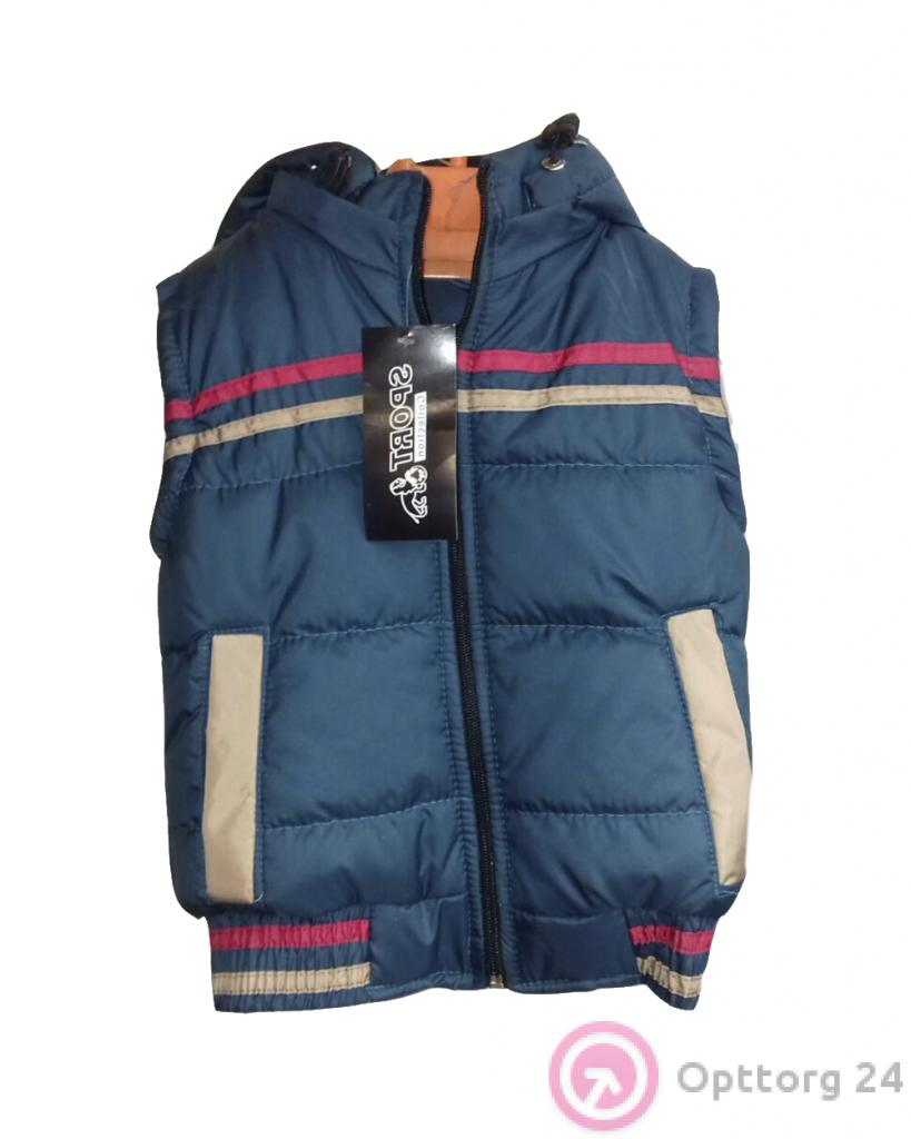 Жилет синего цвета с красной и бежевой полоской оптом