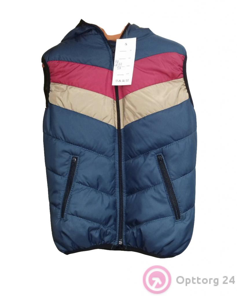 Жилет синего цвета с красной и бежевой полоской оптом