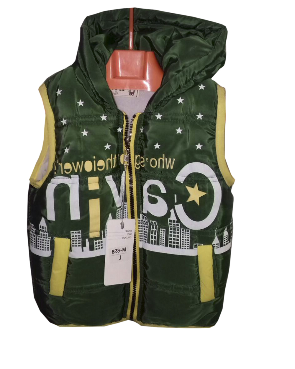Красивая функциональная модель с капюшоном и двумя карманами. Застегивается жилет на молнию, края которой окантованы контрастными желтыми вставками.