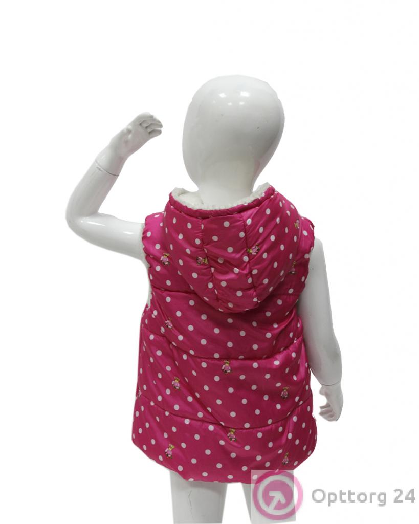 Симпатичная жилетка для девочек. Спереди изделие украшено оригинальными карманами в виде головы зайчика с длиными ушами. Утеплитель - синтепон.
