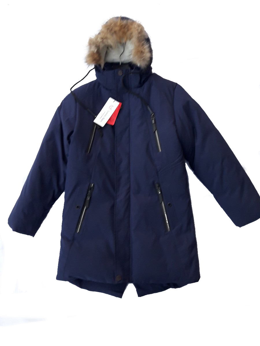 Теплый пуховик для мальчика синего цвета с капюшоном (натуральный мех). Очень практичный и удобный.