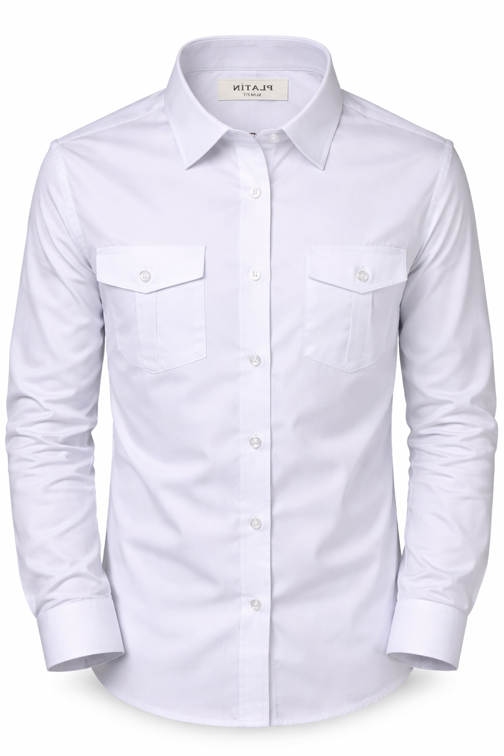 Описание: Рубашка мужская классическая Platin, универсальный белый цвет, длинный рукав, необходима для любых мероприятий, модные накладные карманы дополнят ваш стиль.