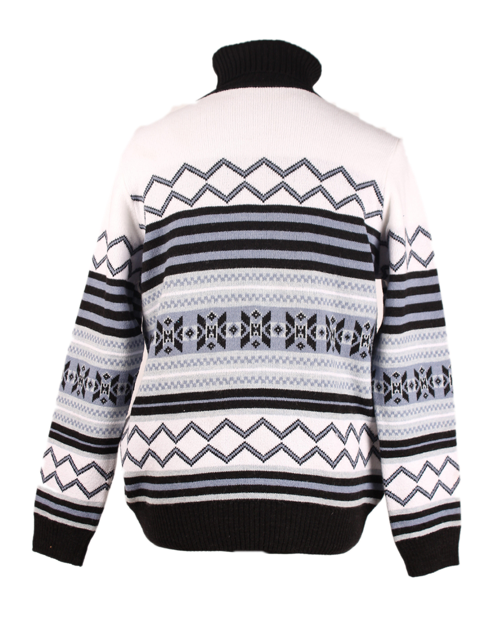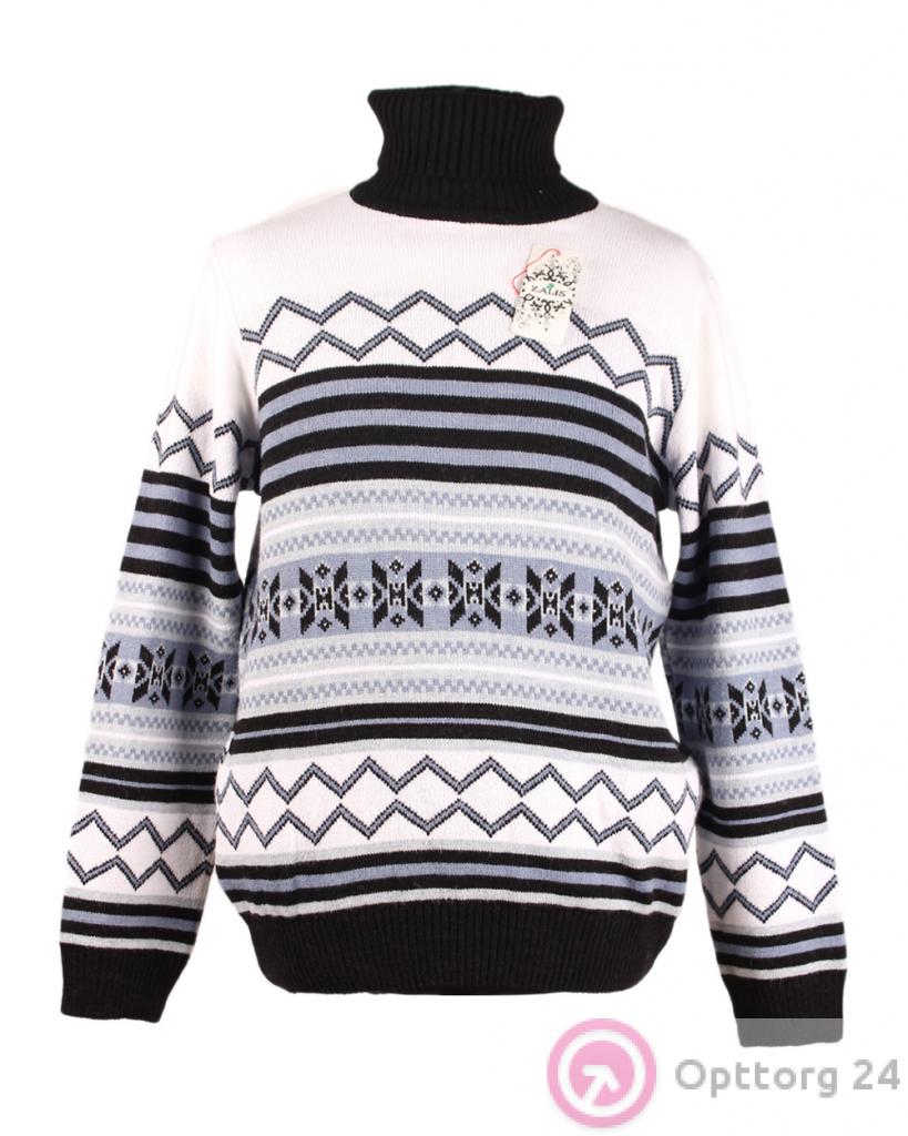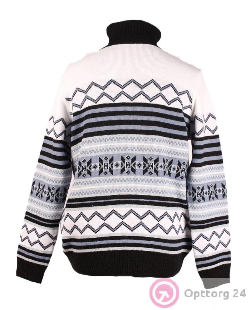 Джемпер мужской бело-черный с геометрическим рисунком оптом