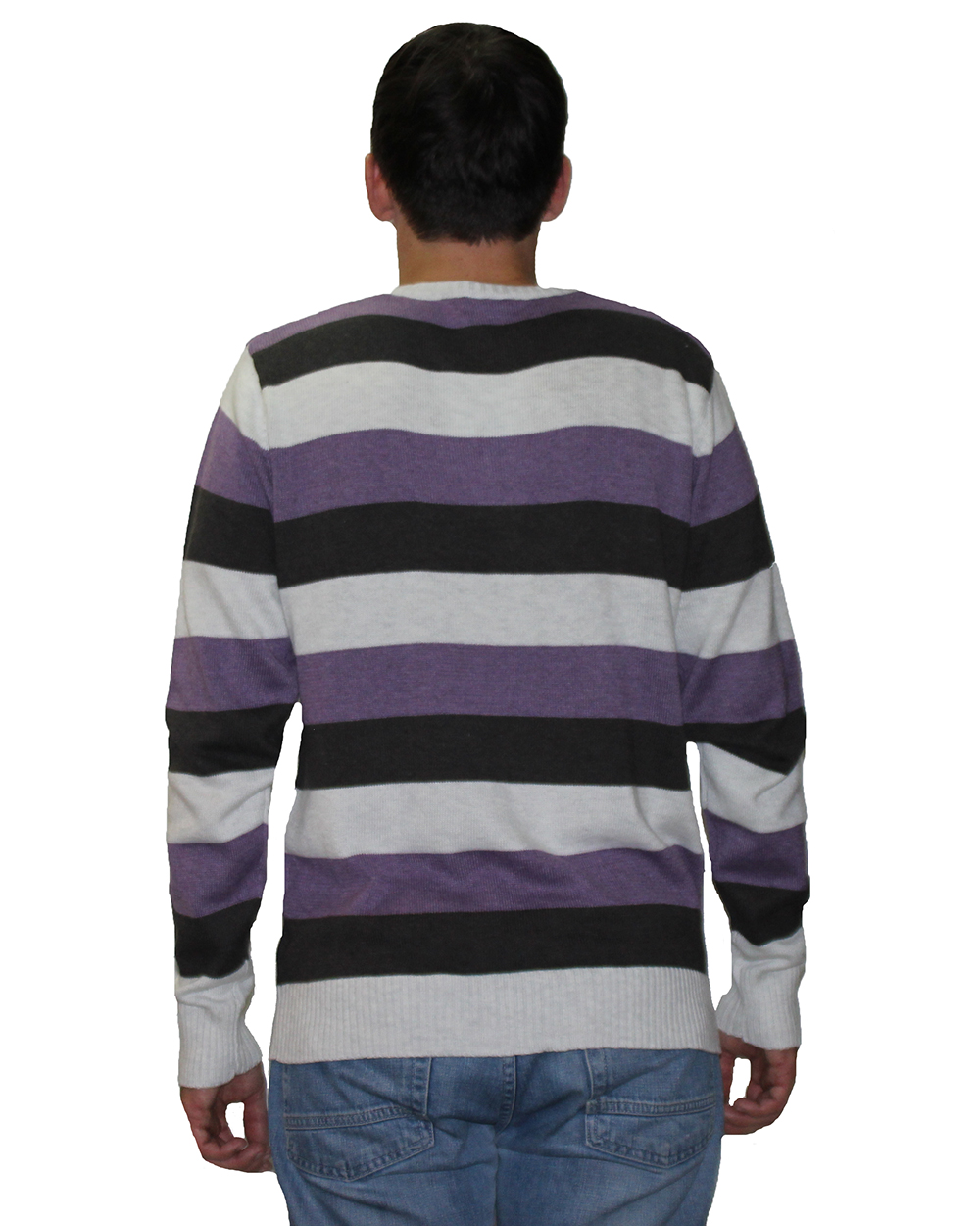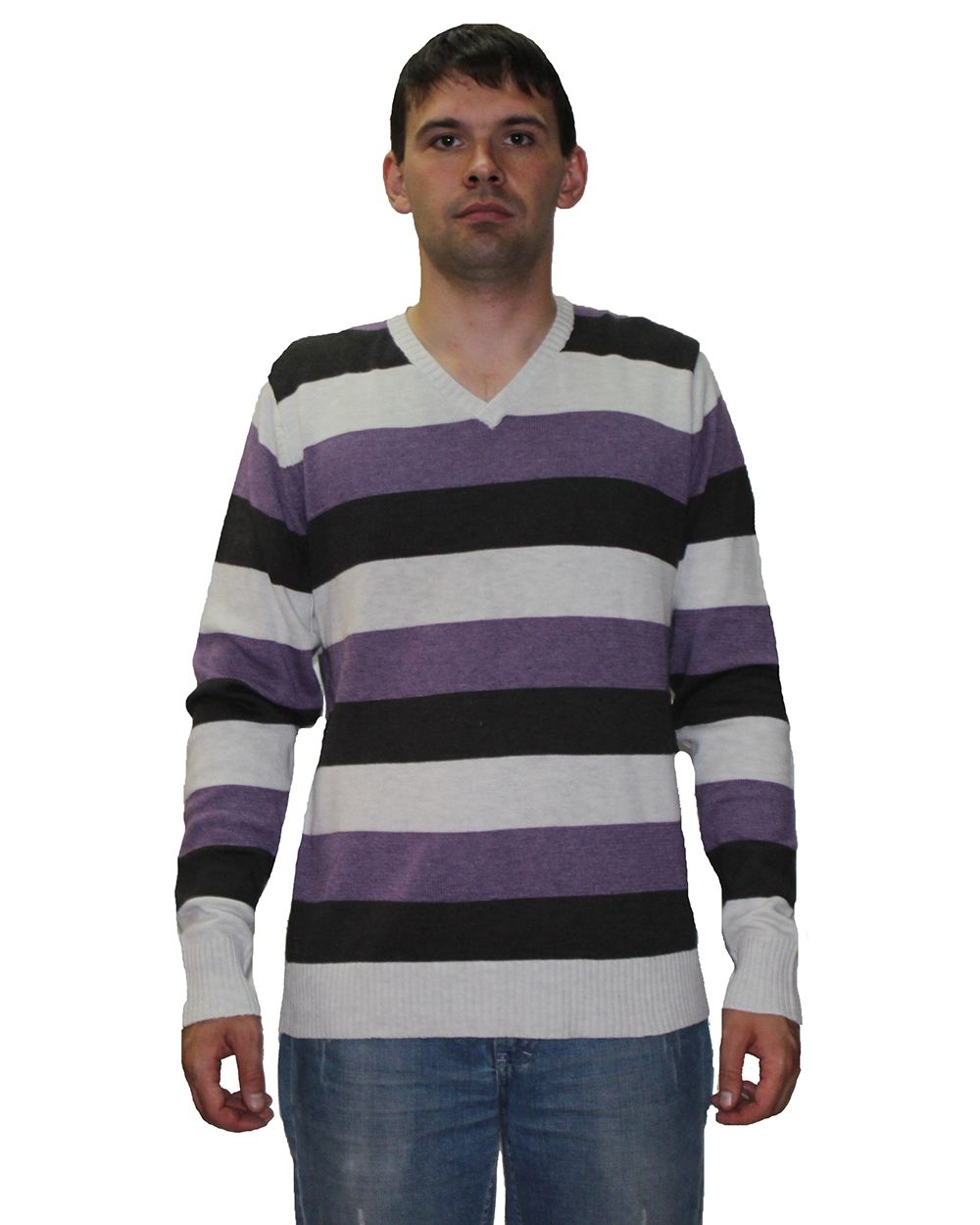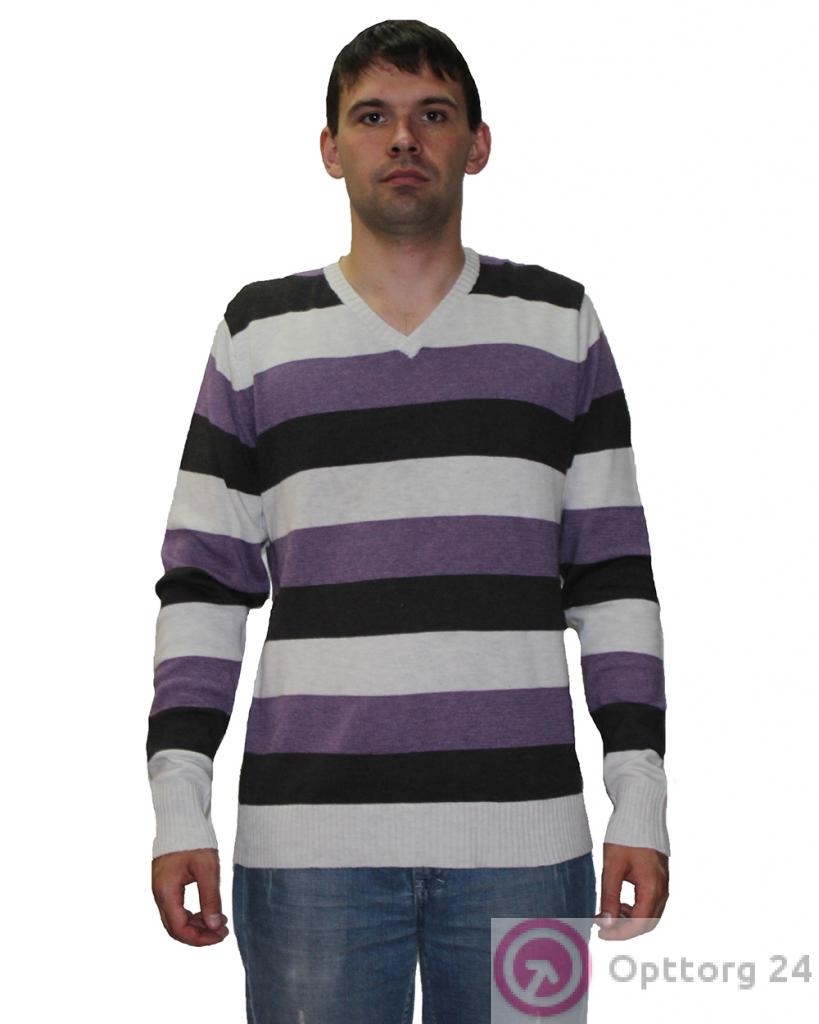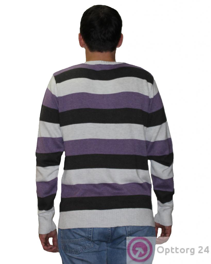 Джемпер мужской белого цвета с чёрными и фиолетовыми полосками оптом