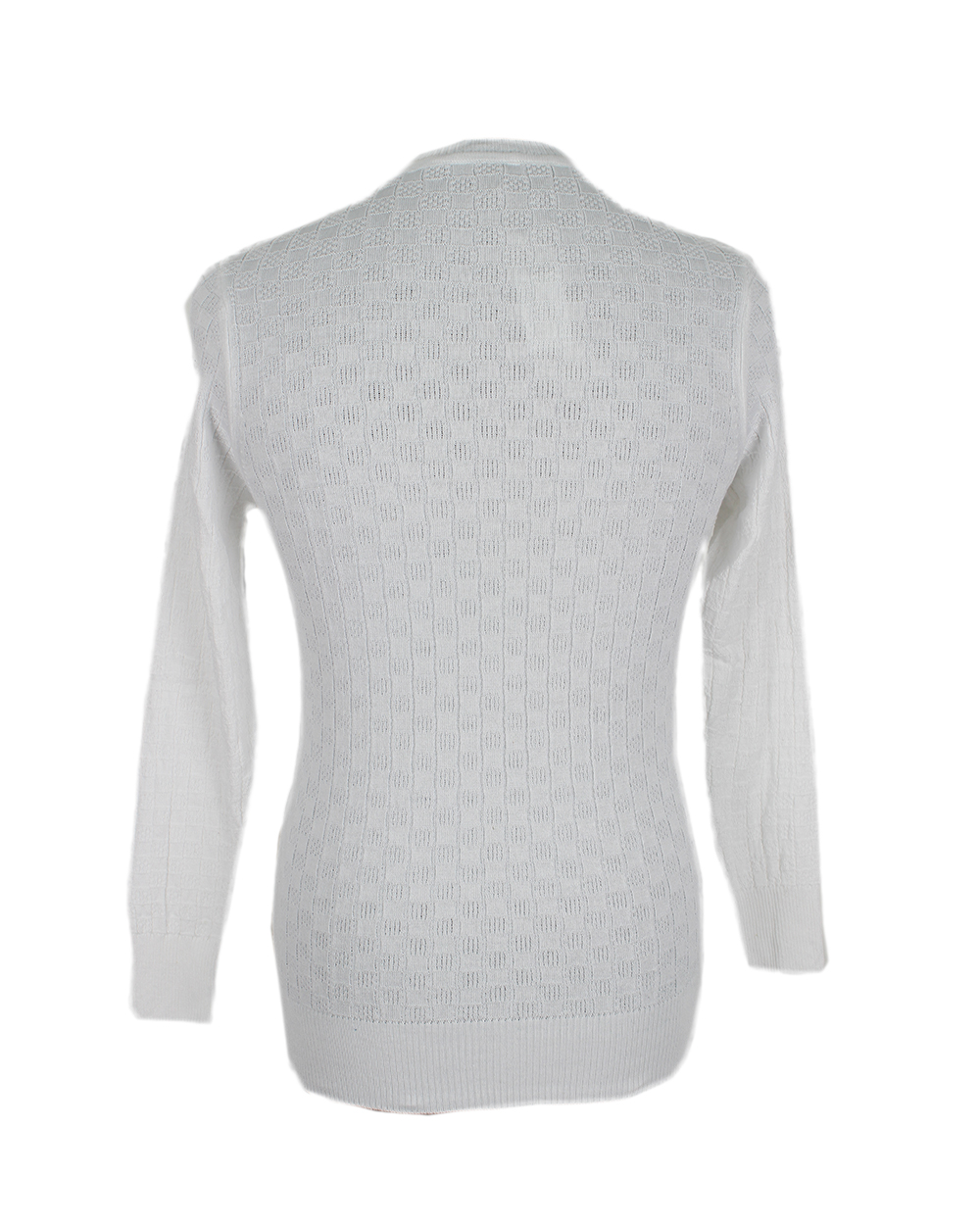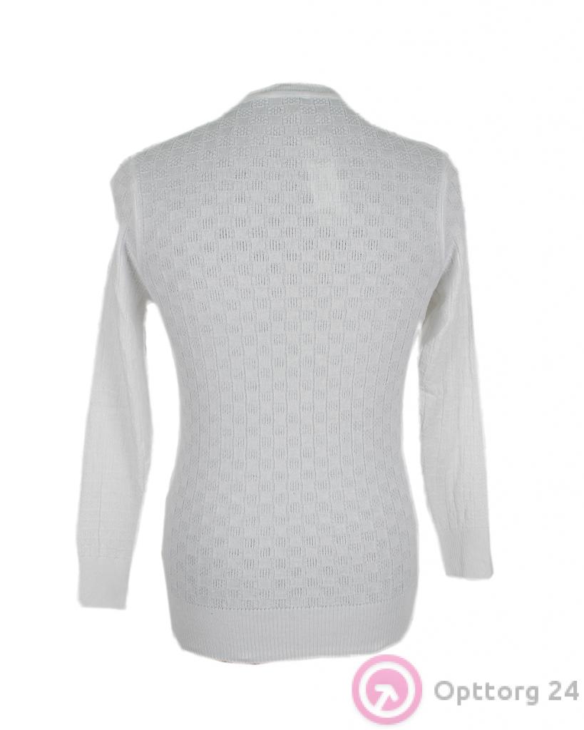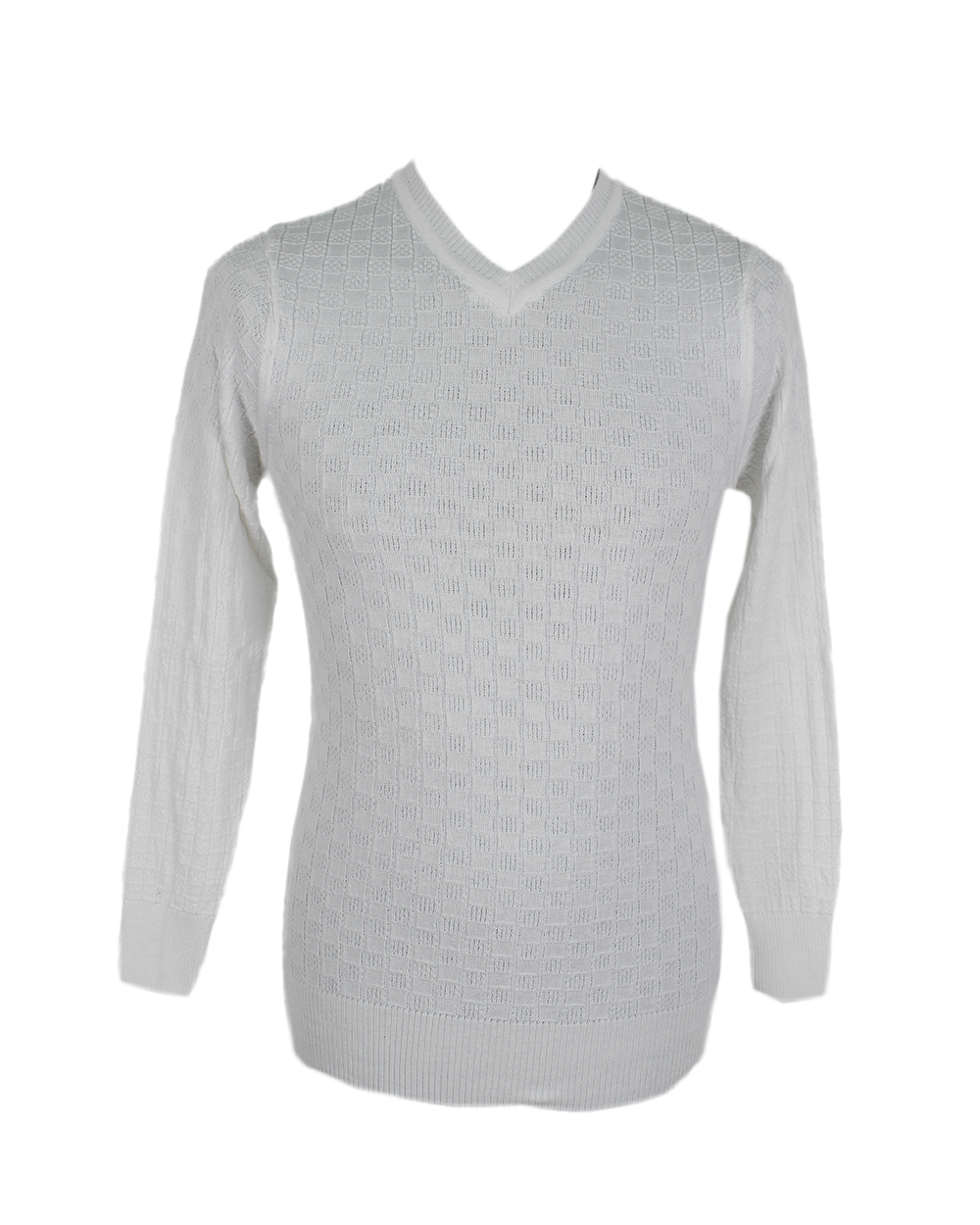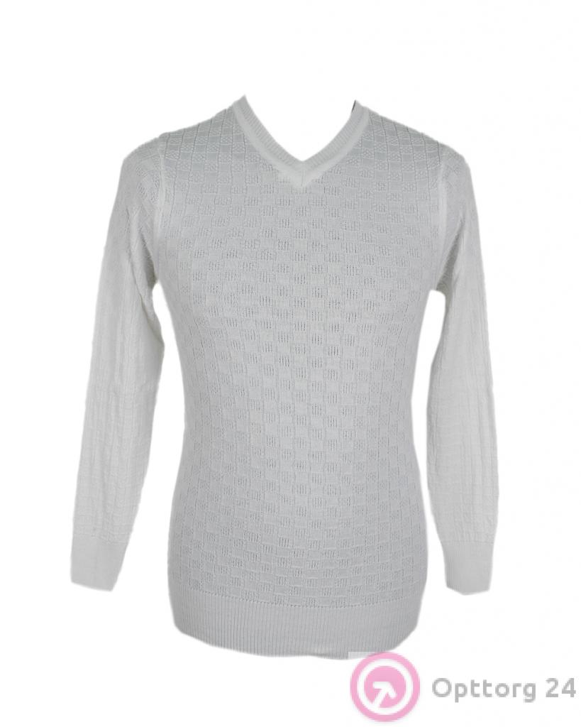 Легкий мужской джемпер белого цвета. Модель имеет V-образный вырез горловины.