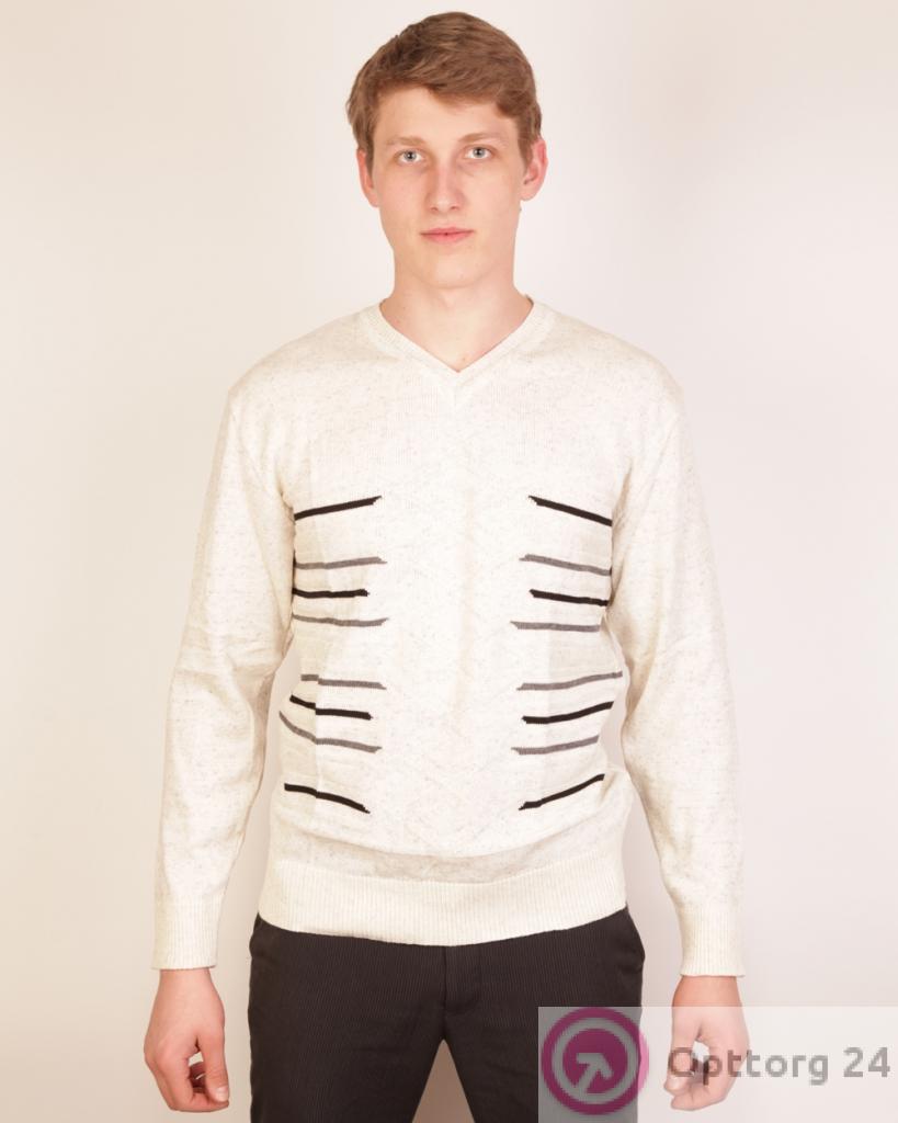 Джемпер мужской бежевого цвета с отделкой оптом