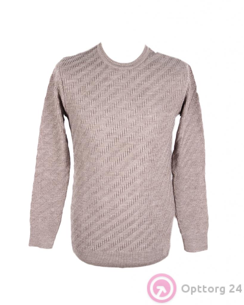 Джемпер мужской бежевый с полосатым фактурным рисунком оптом