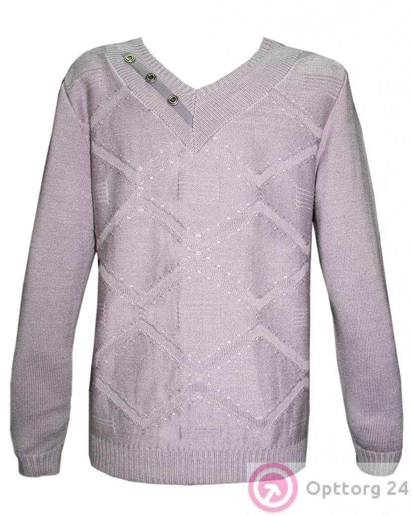 Джемпер мужской бежевый с V-вырезом и декором оптом