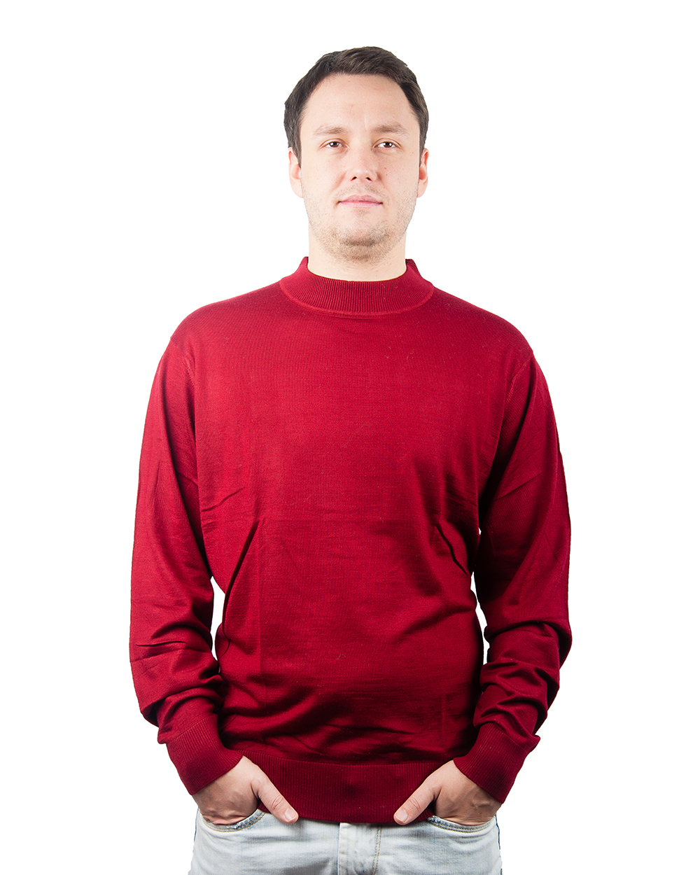 Бордовый джемпер с круглым воротом будет прекрасно смотреться на мужчинах, которые хотят выглядеть просто и элегантно одновременно. Идеальный тканевый состав джемпера сохранит тепло и не позволит замерзнуть зимой.