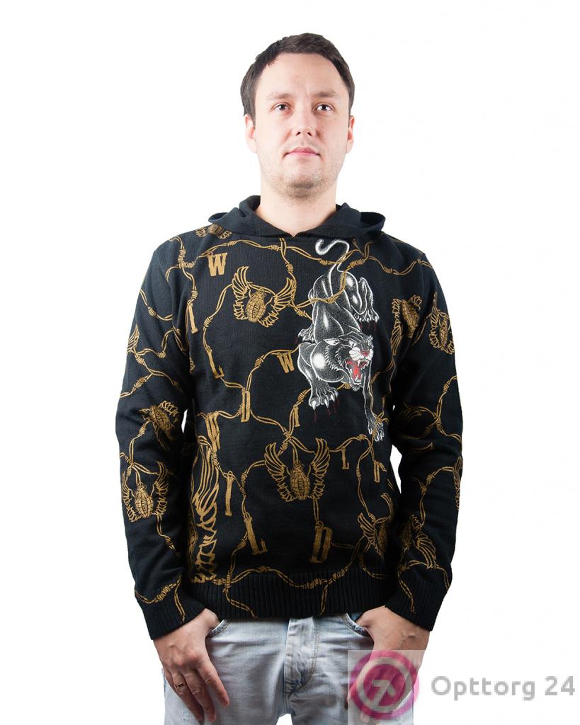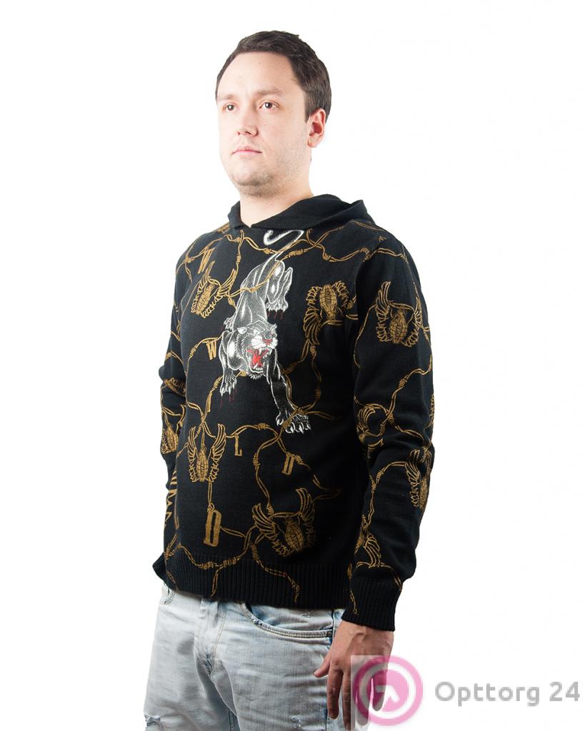 Джемпер мужской черный с принтом "тигр" оптом