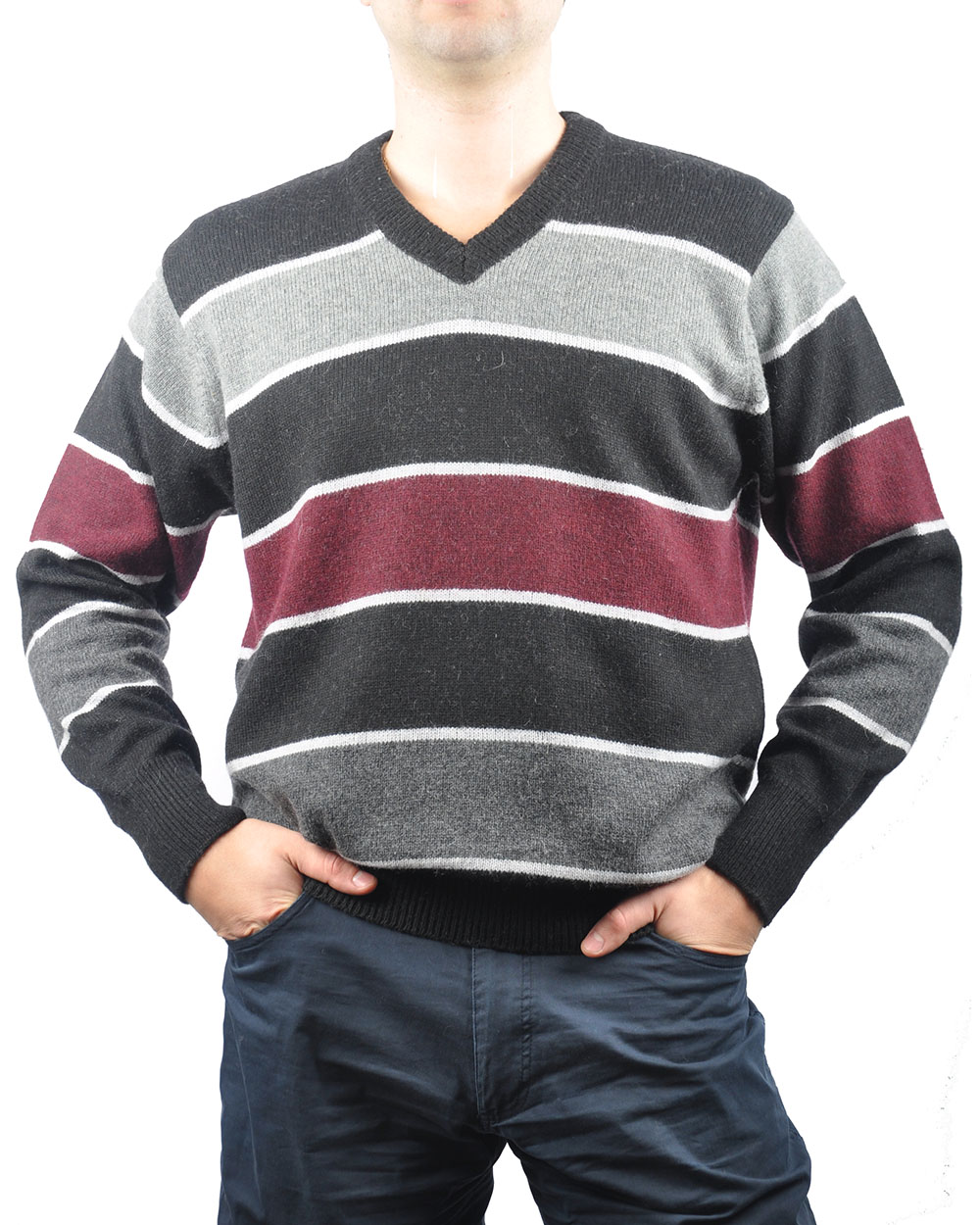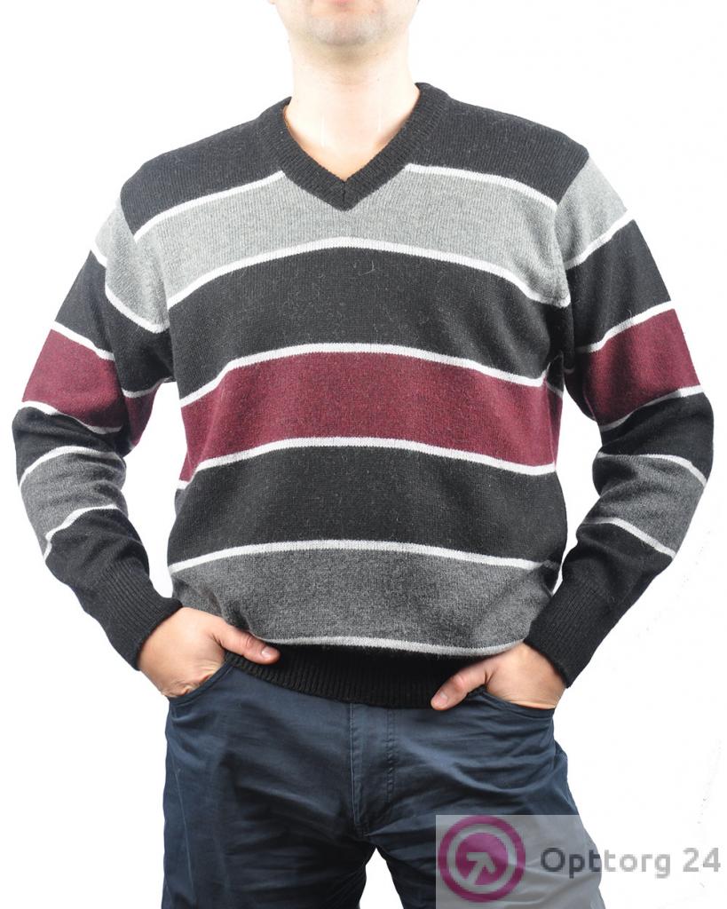 Джемпер мужской черный в серую и лиловую полоску оптом