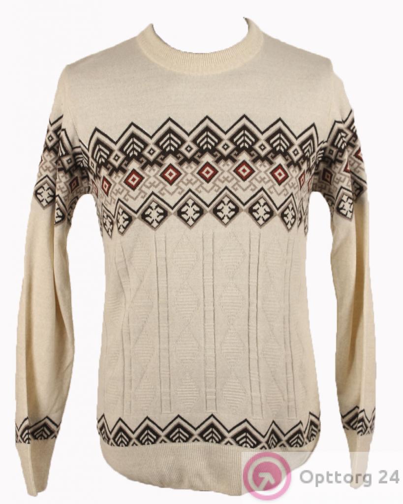 Джемпер мужской кремового цвета с двух цветным рисунком на груди оптом