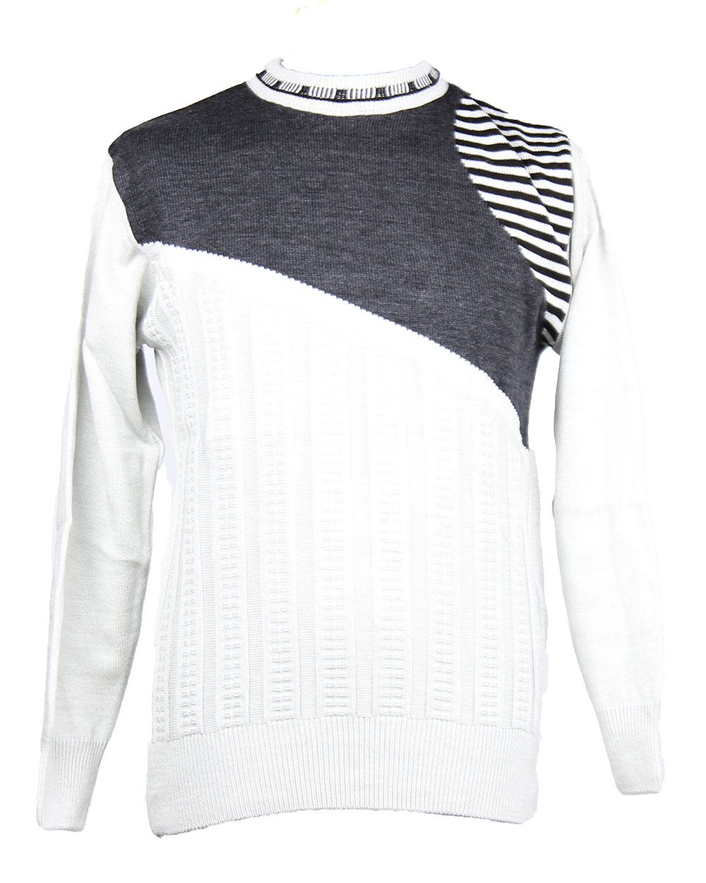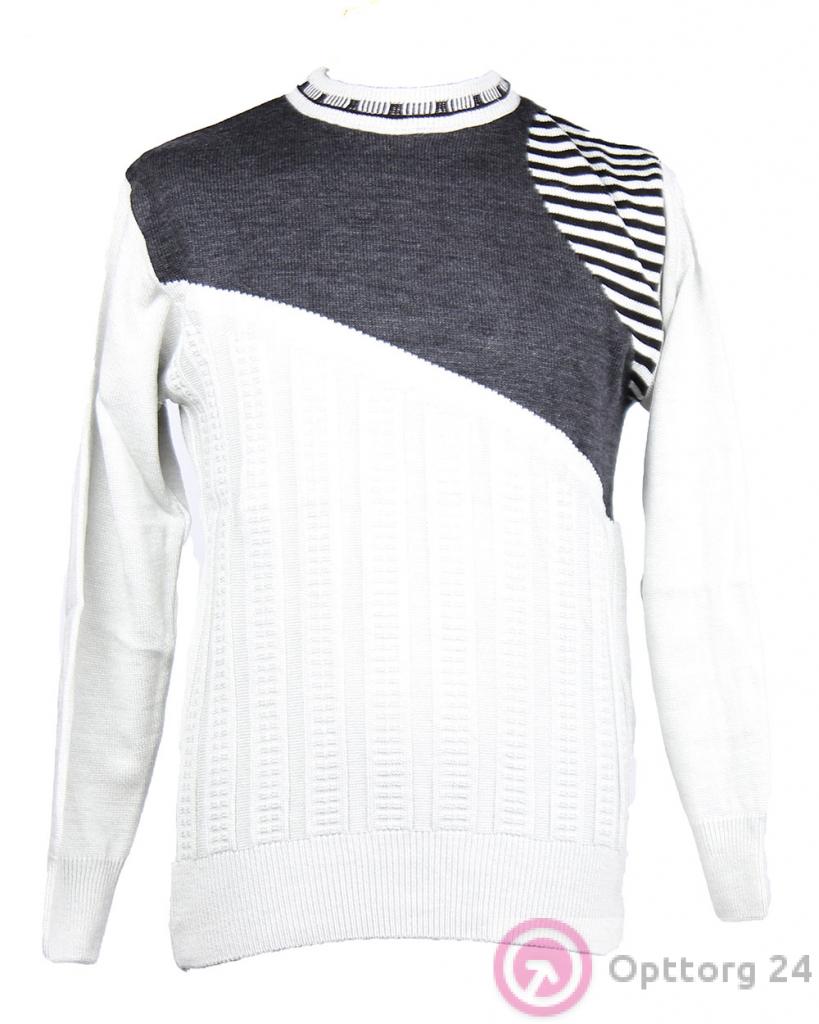 Джемпер мужской молочного цвета с серой вставкой в полоску оптом