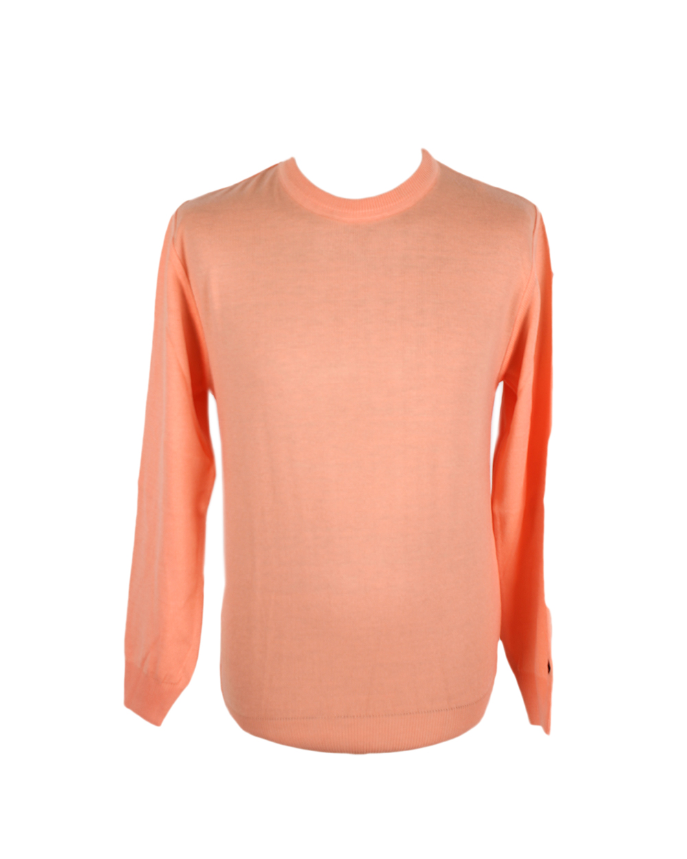 Мужской джемпер прямого кроя. Изделие имеет округлую горловину и длинные рукава.