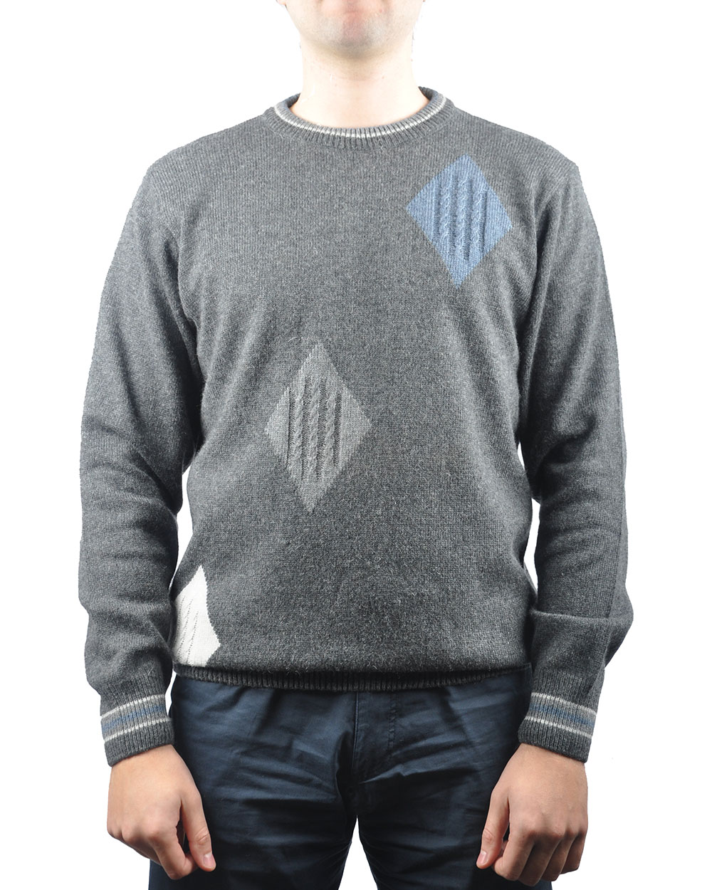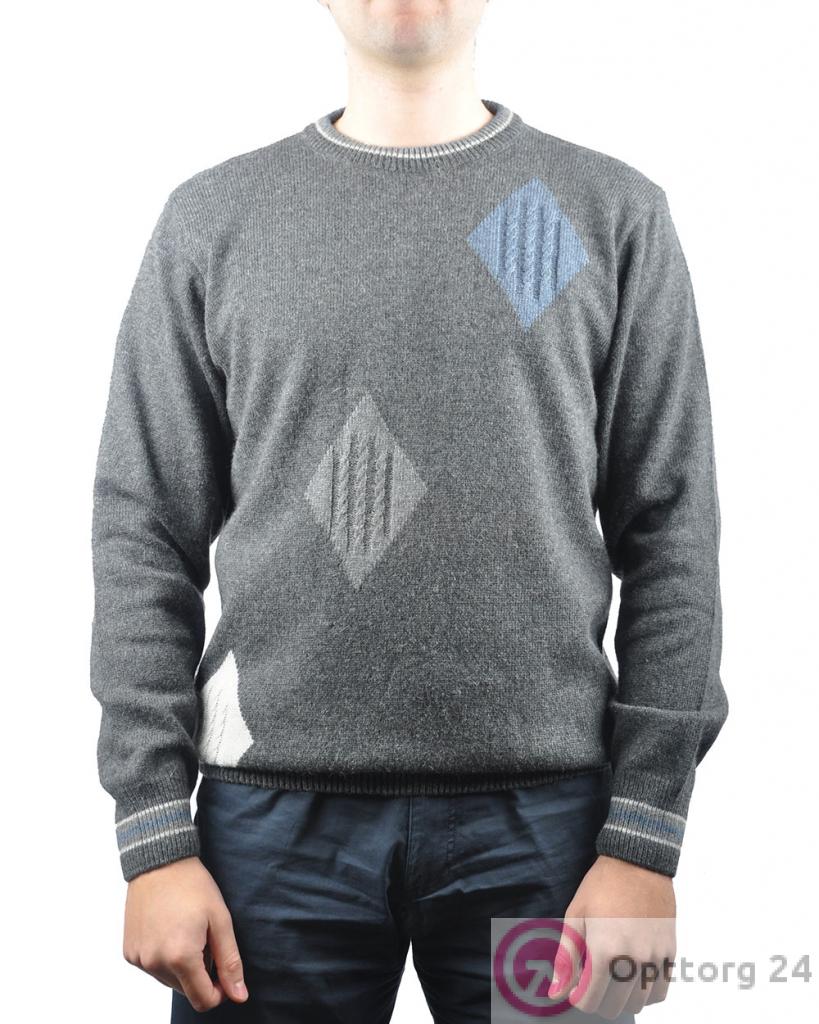 Джемпер мужской с круглым вырезом серый с ромбами оптом